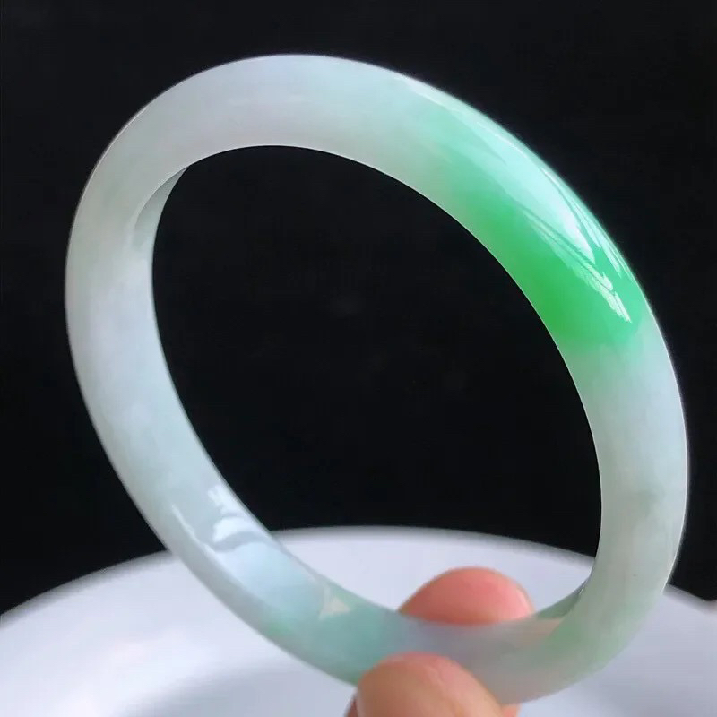 自然光拍摄天然翡翠A货飘绿好种水58mm正圈手镯 45.16克