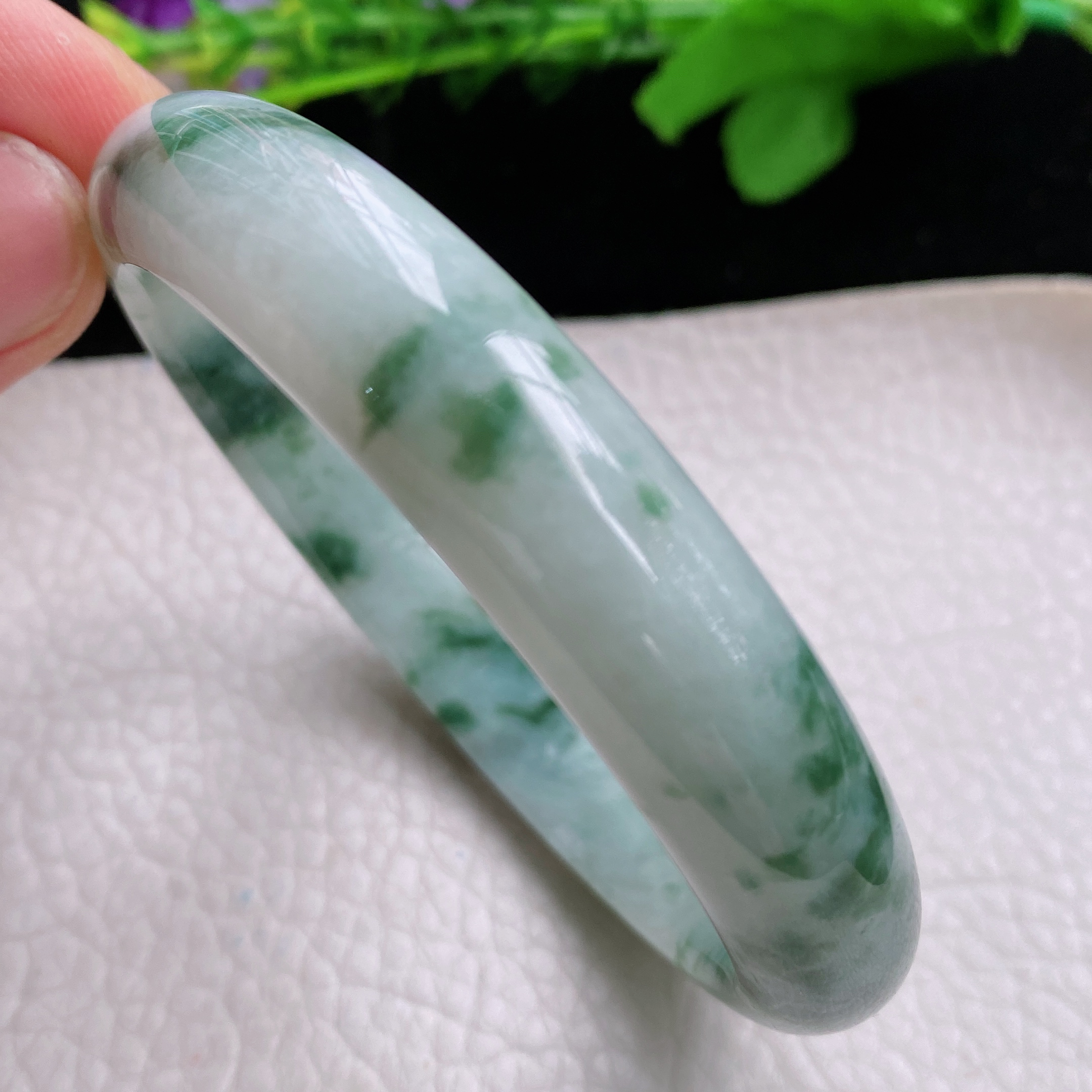 57.5/13.4/8.2,芙蓉绿正圈,料子细腻干净,水润,佩戴知性优雅,棉线,ss47151a