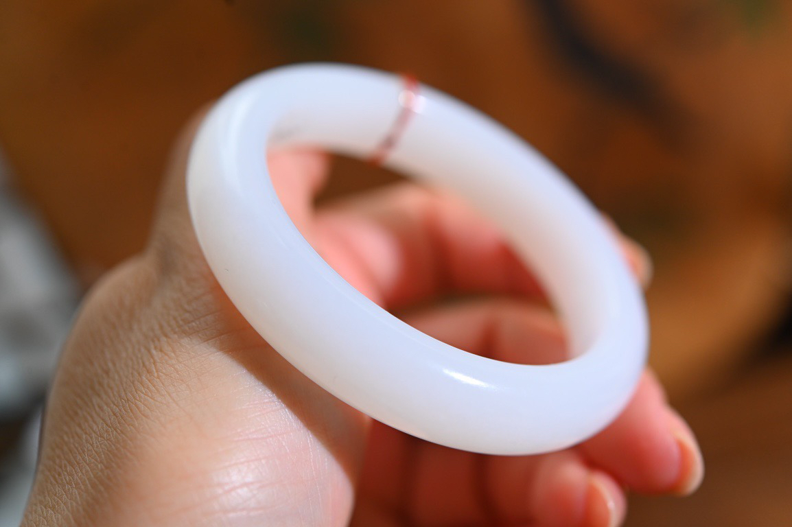 羊52羊脂白玉手镯和田玉山料手镯52圈口宽12厚9无裂无杂无水线特细腻 高脂粉,高品质,萦绕腕间时,