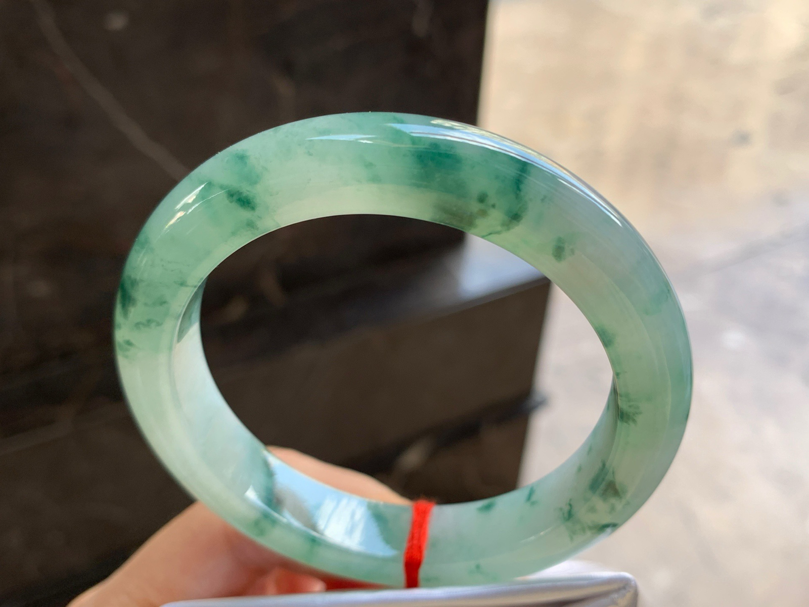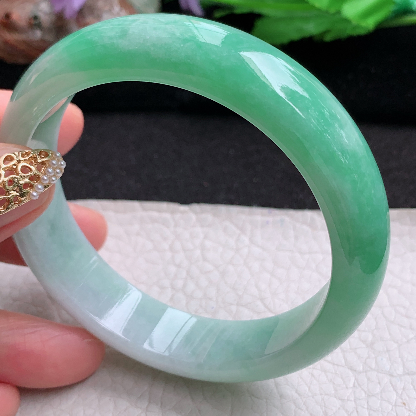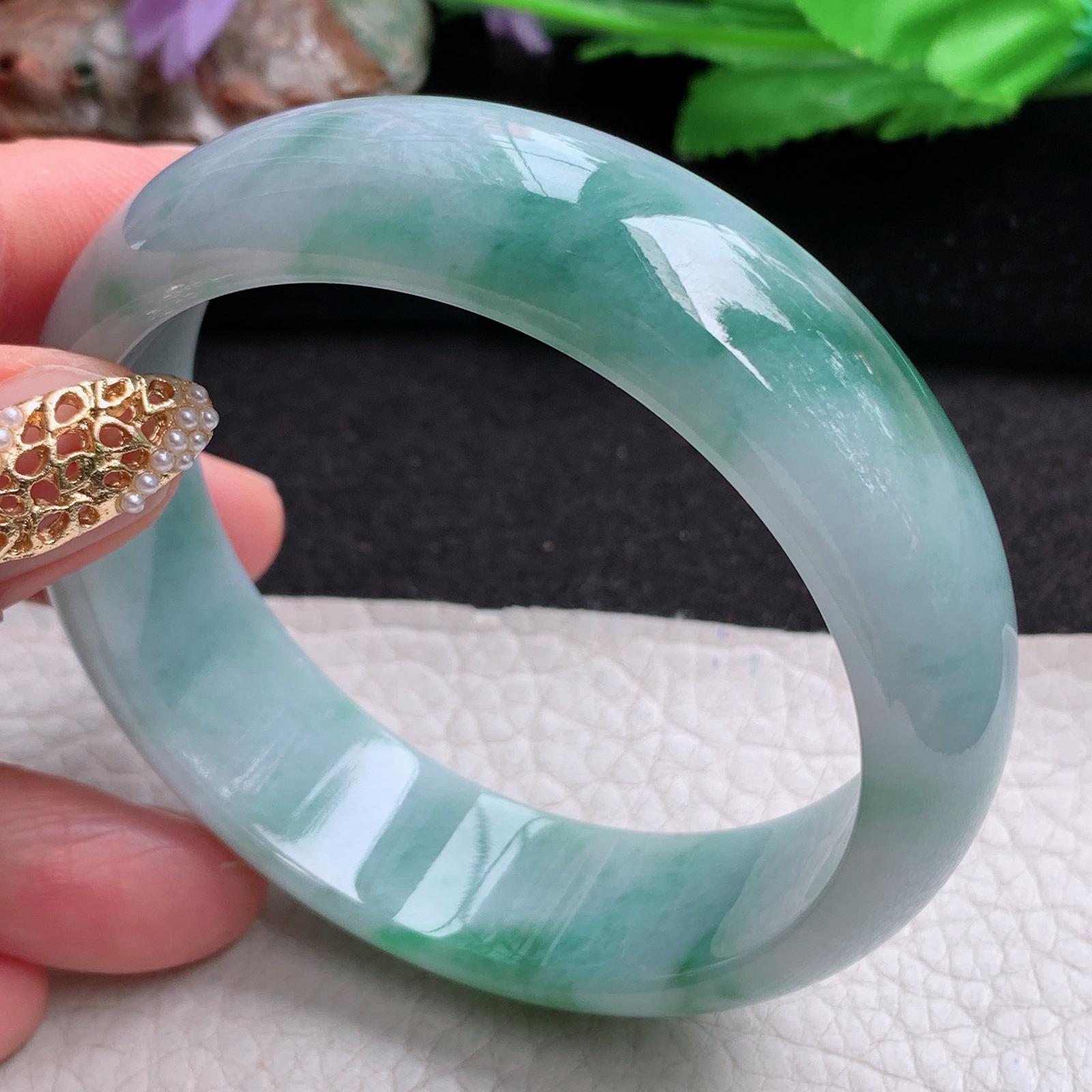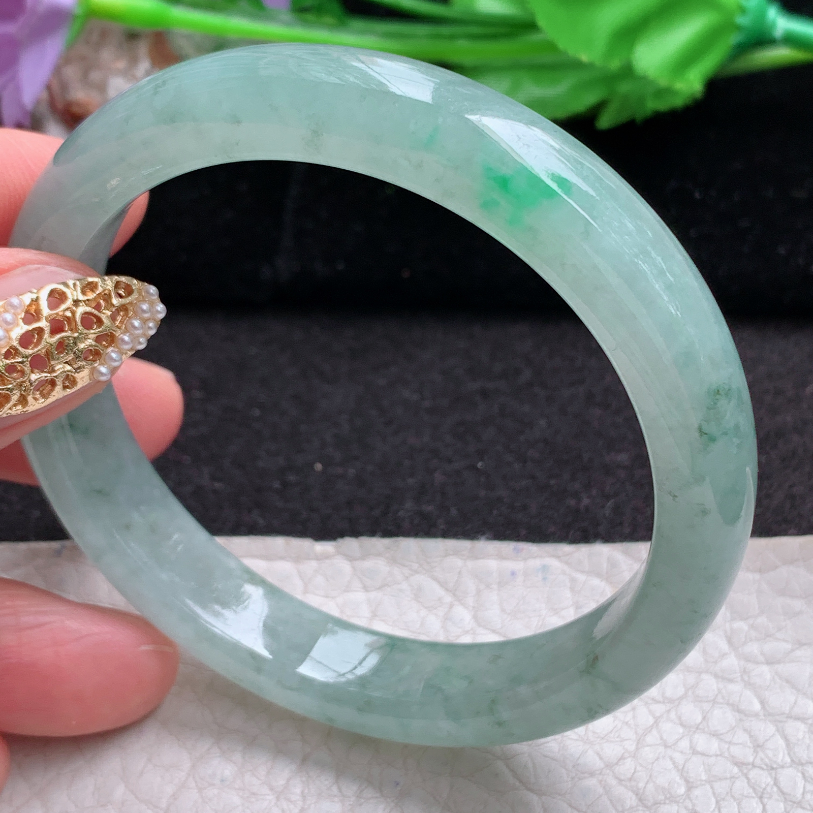 js实拍58.5*17.8*7.4轮胎镯 天然缅甸翡翠a货手镯飘花大气正圈玉镯子