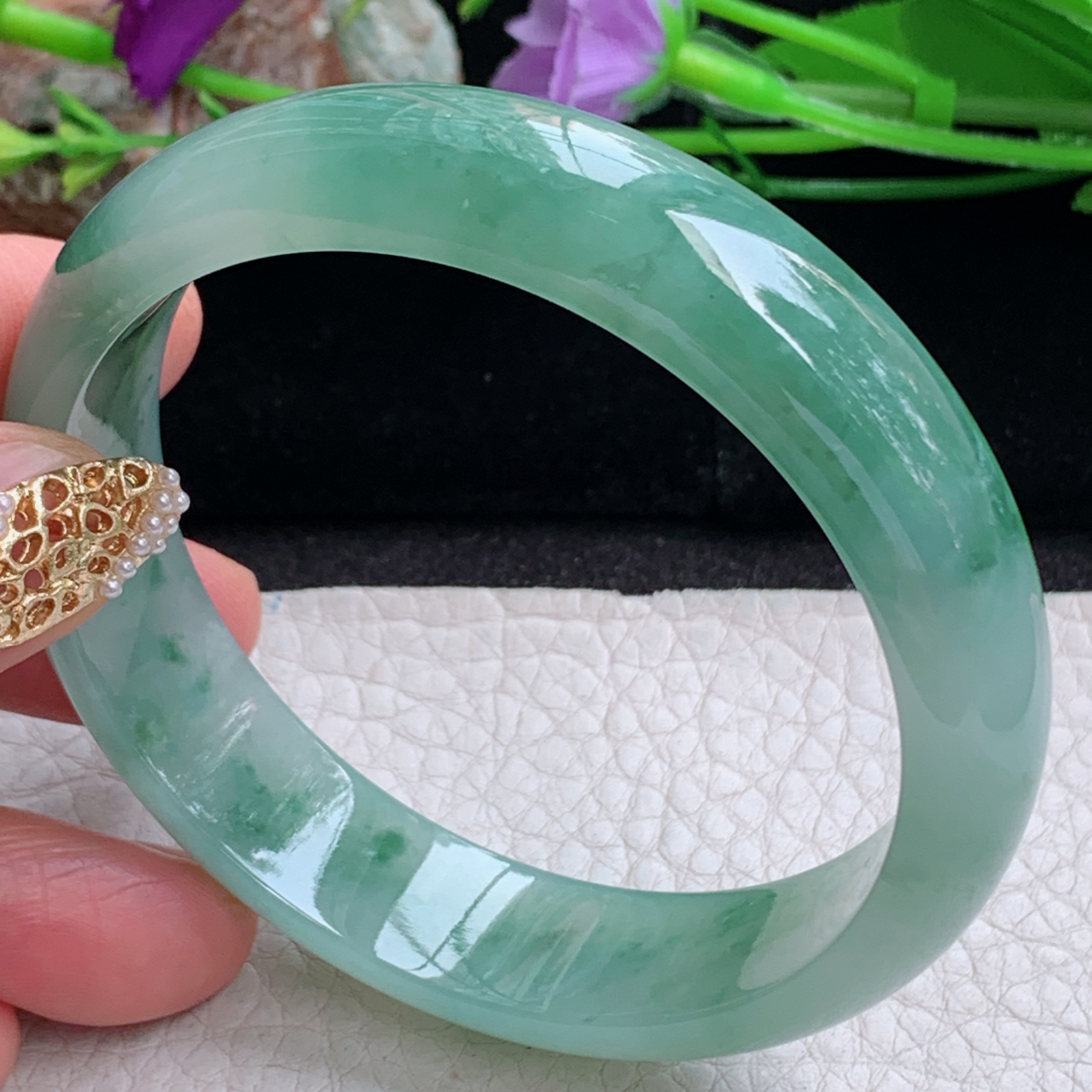 55/10.8,满绿圆条,腕间藏了一整个春天。这抹满绿,是时光凝成的诗..
