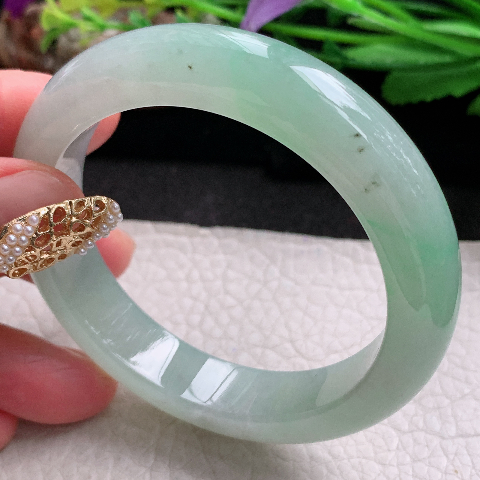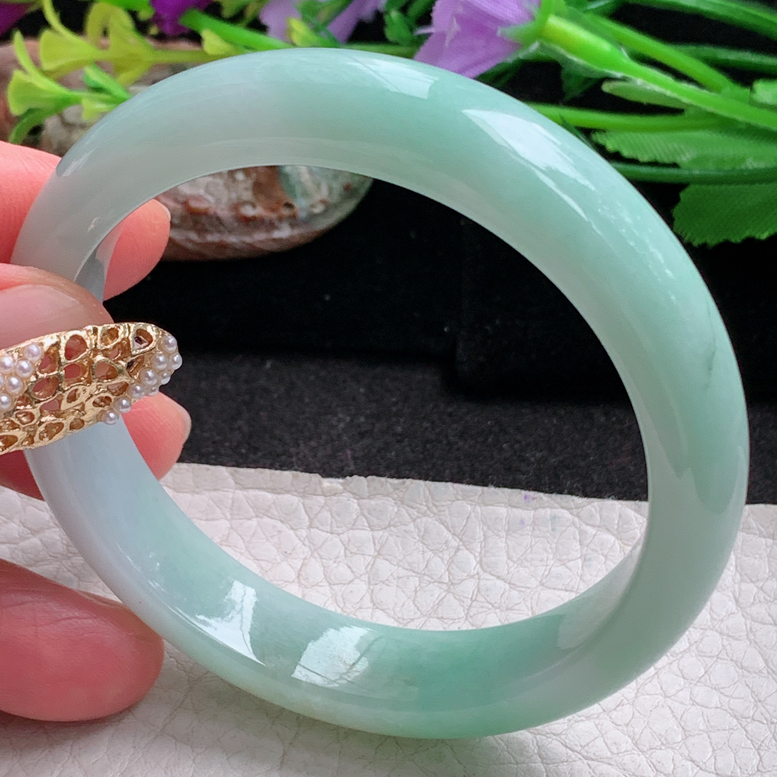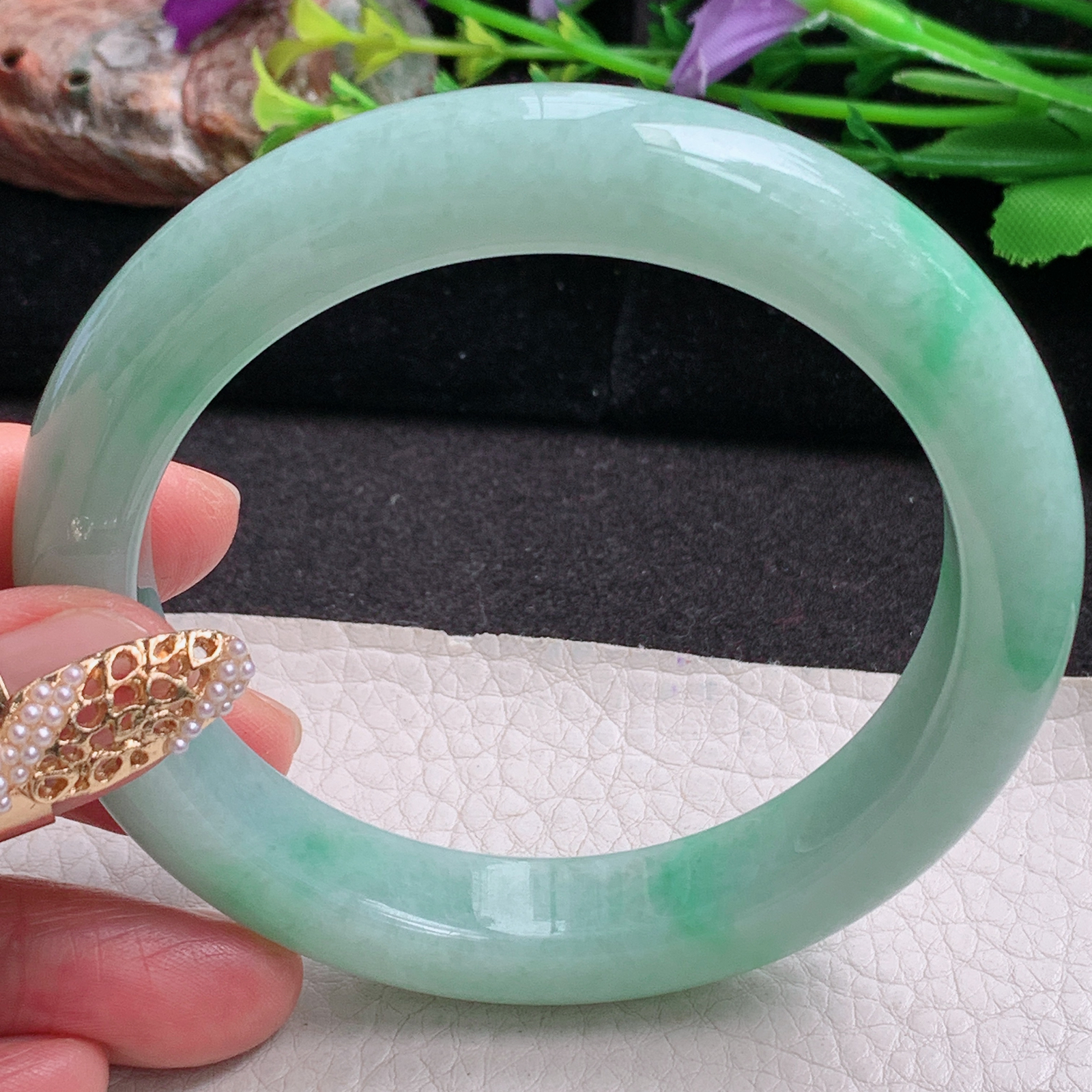 59.4/12.4/8.9,紫罗兰正圈,一抹翠色俏丽灵动,一方腕间,收尽天地祥瑞。棉线纹,ss511