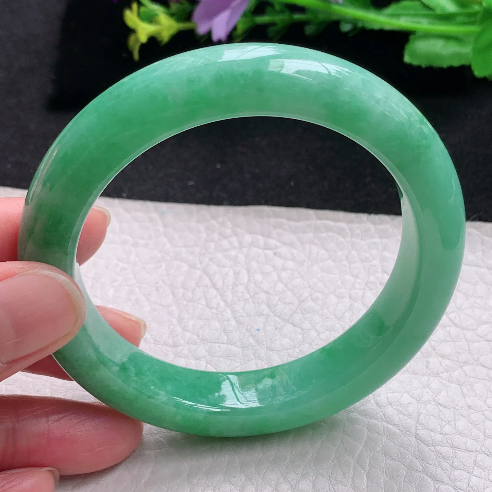 yh自然光57*12.6*9.8平安镯 缅甸翡翠玉手镯满绿厚装玉手环