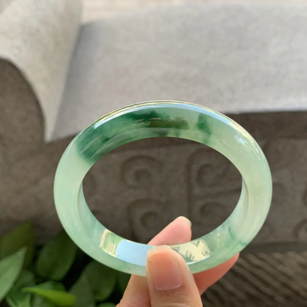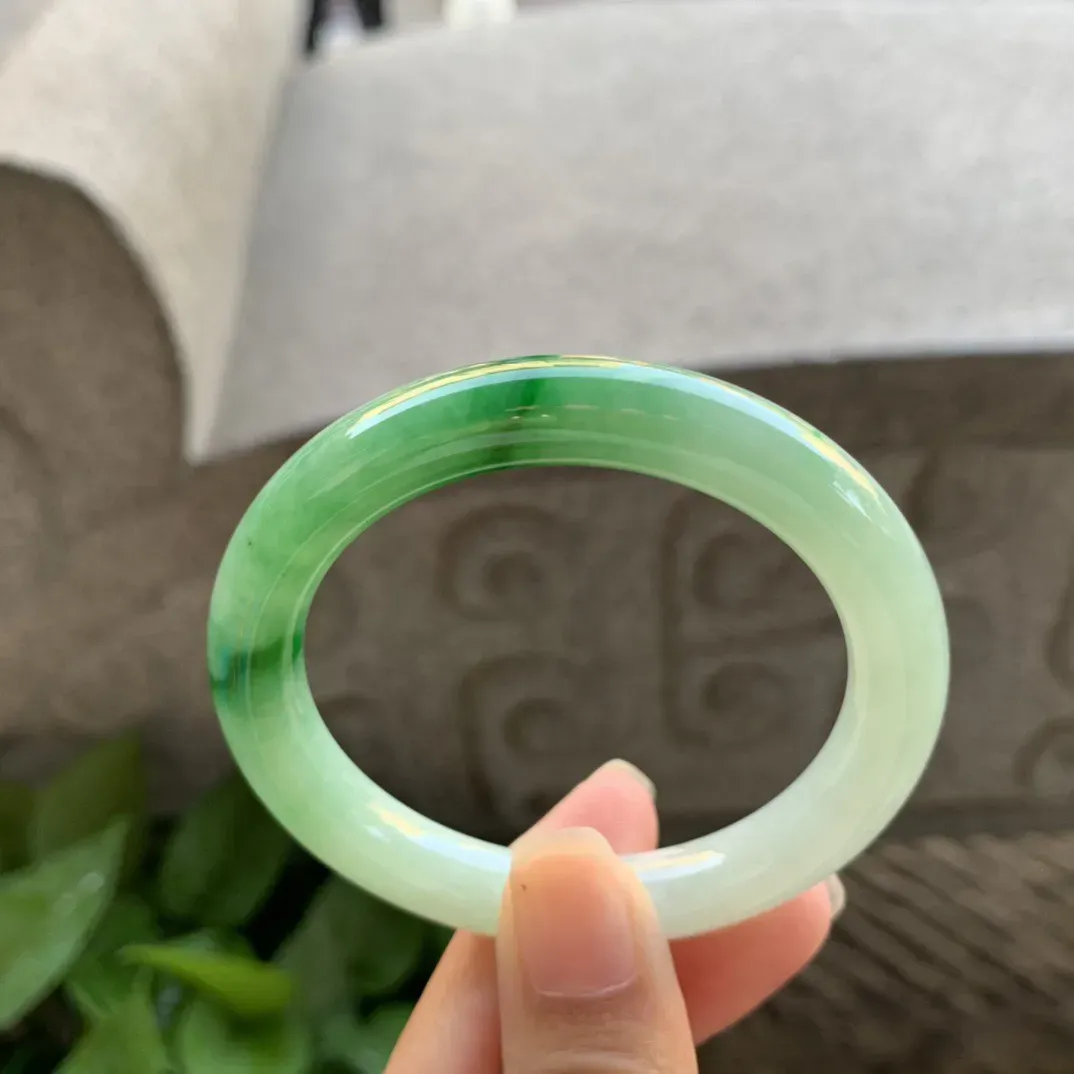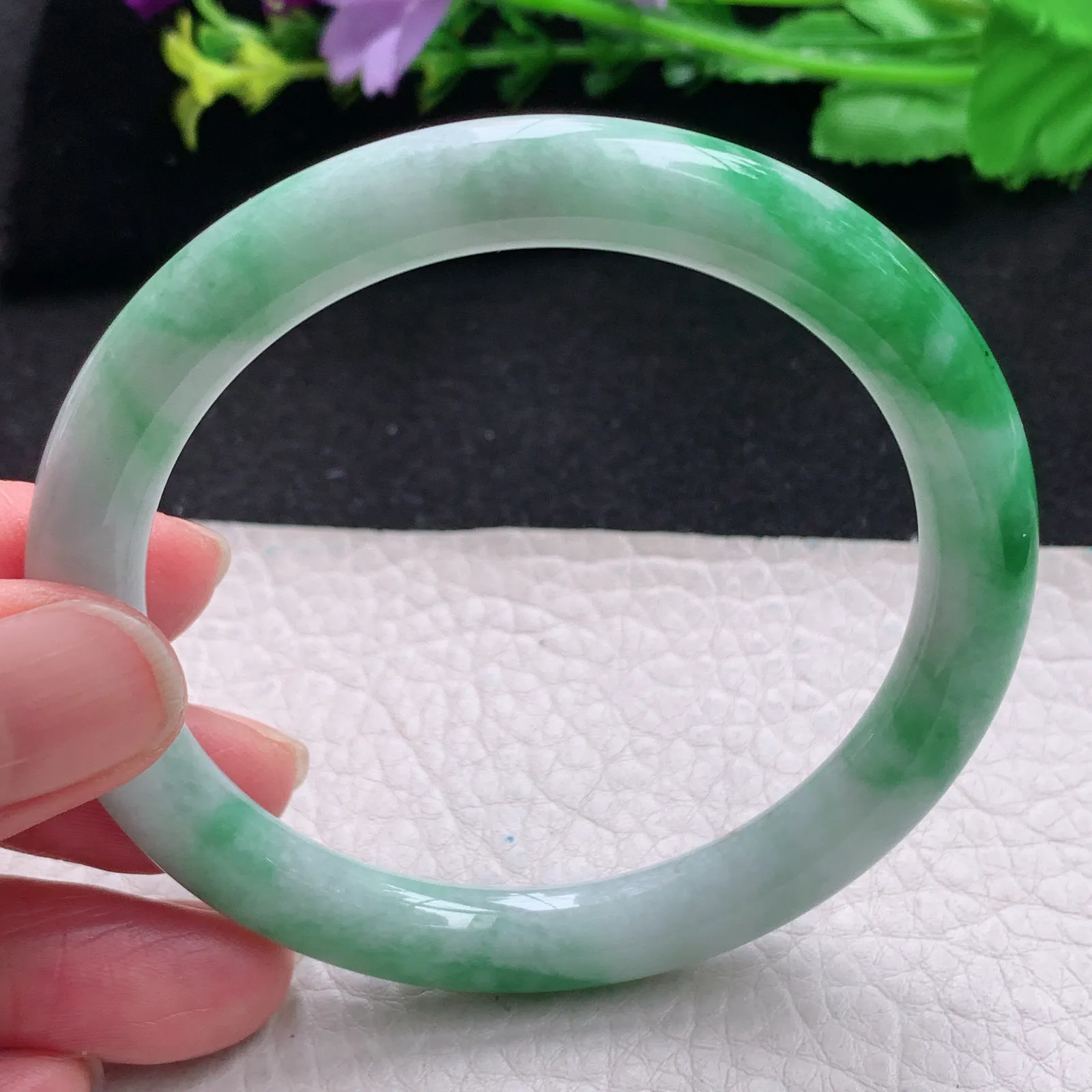 yh自然光57*8*8.3叮当镯 缅甸翡翠玉手镯飘绿秀气圆条玉手环
