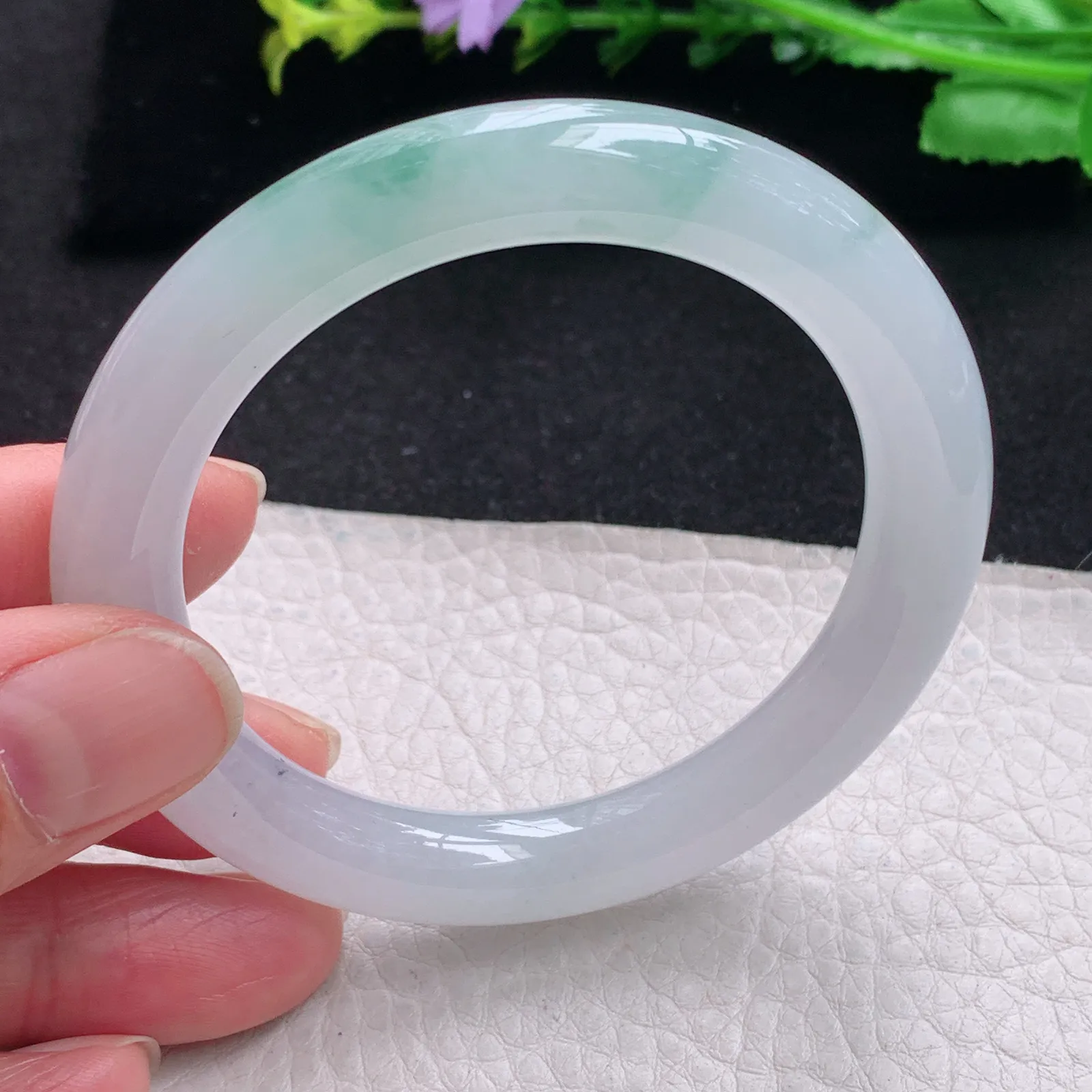 yh自然光53*8.8*9.3美人镯 缅甸翡翠玉手镯冰润飘花圆条玉手环 叮当镯