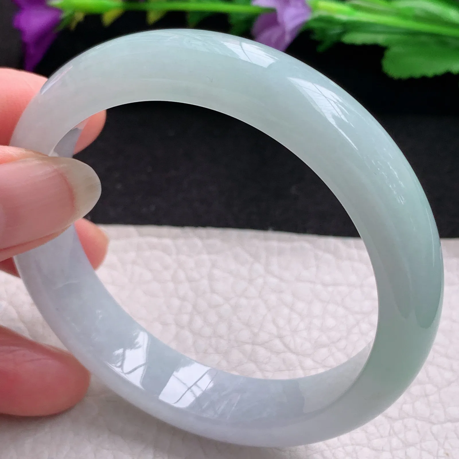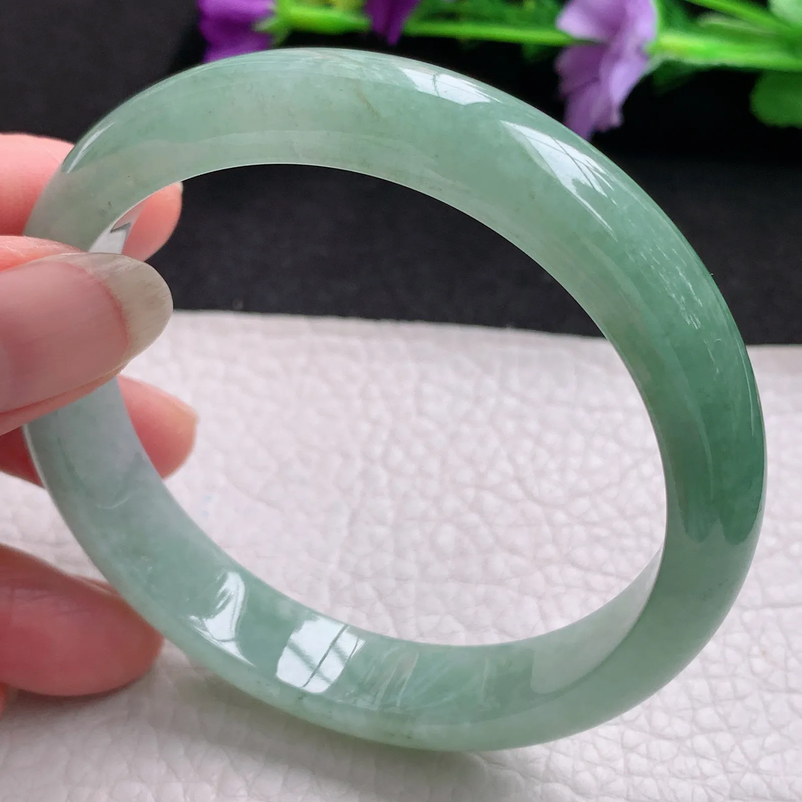 nr大圈口60*12.2*7.6平安镯 天然缅甸翡翠冰润水绿宽边玉手镯 玉手环