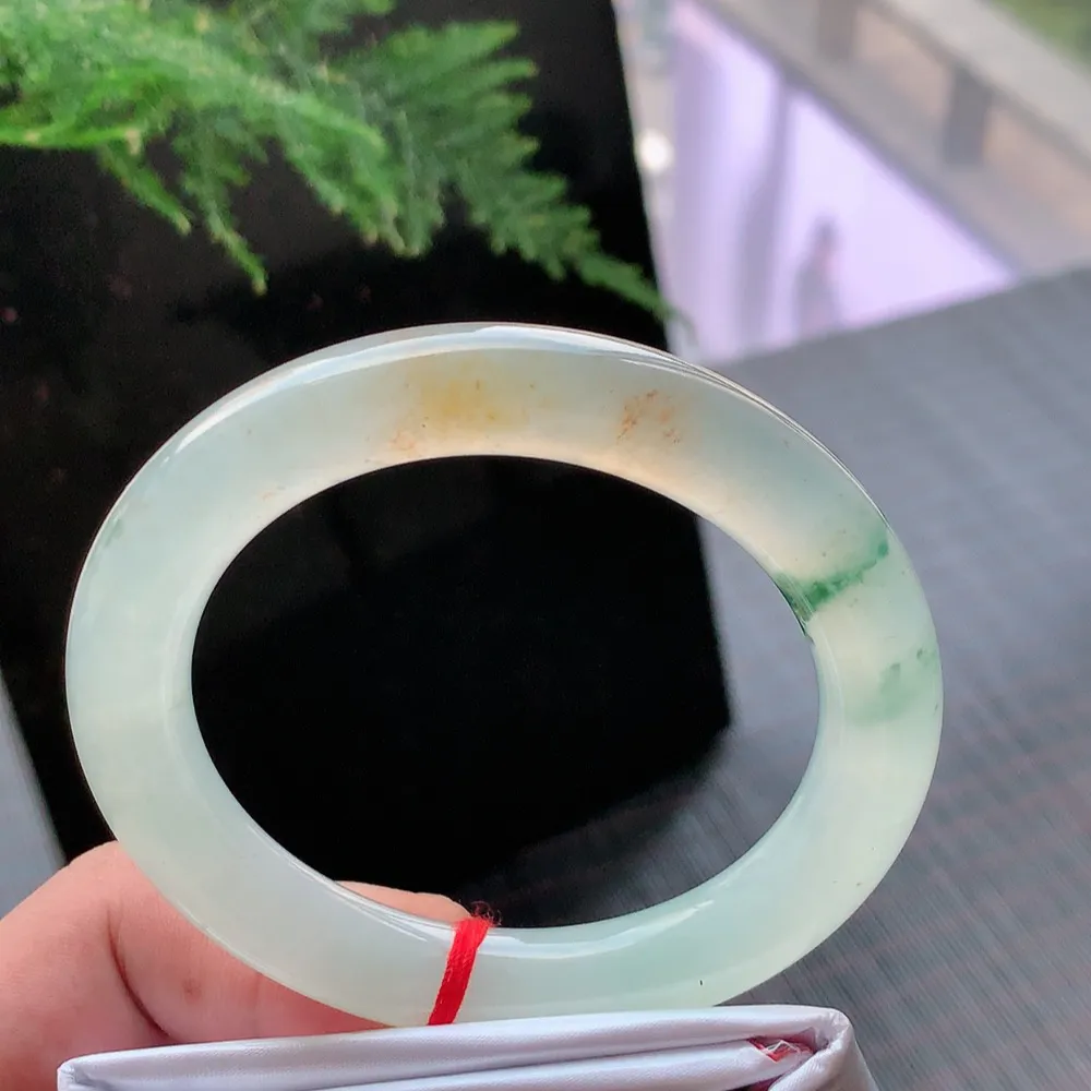 圆条高冰黄翡绿花 无瑕 尺寸:56.1/11/10.5 种色俱佳