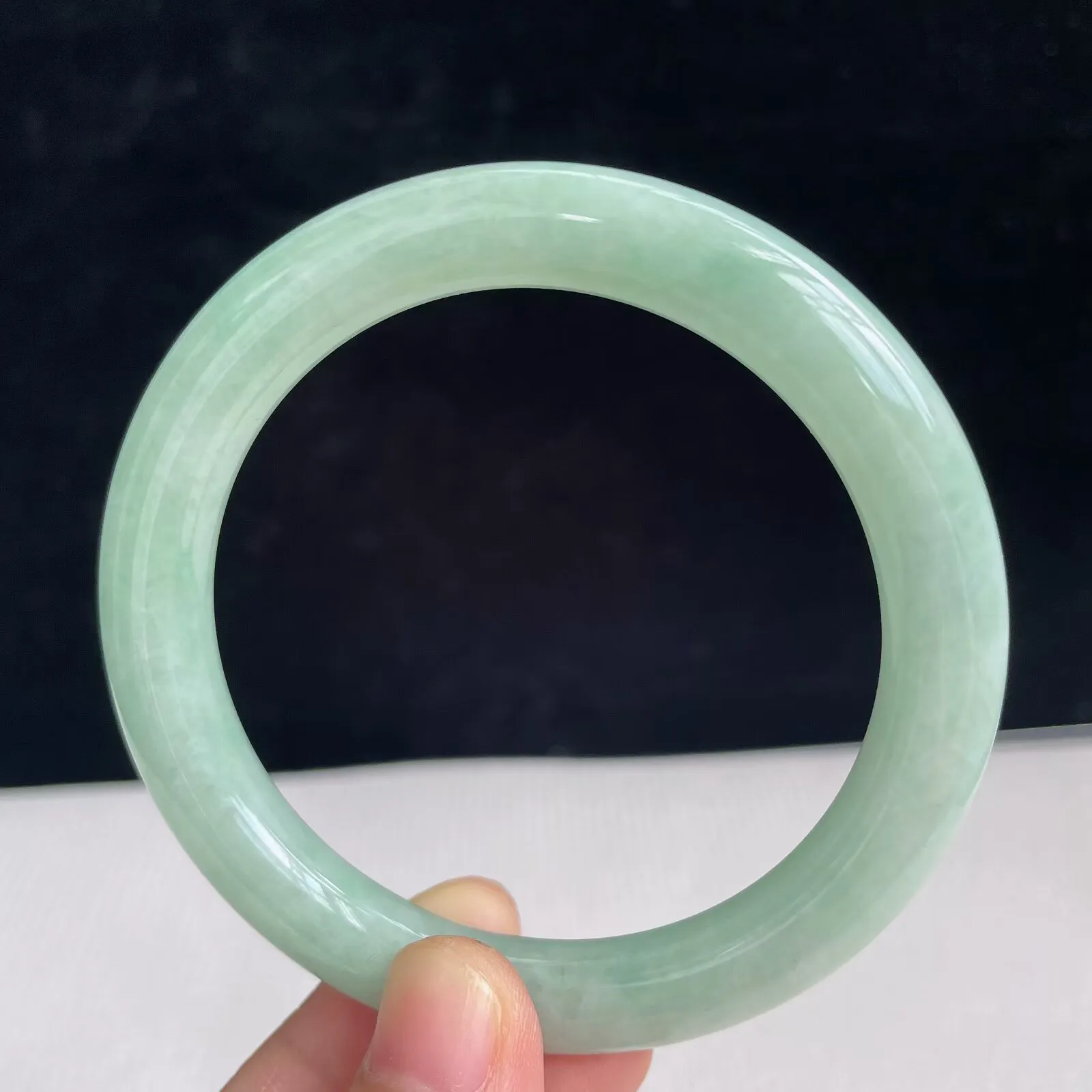 【翡翠名称】老种飘阳绿56.6正圈口翡翠手镯 【翡翠尺寸】56.6/12.9/9.3mm适合55.5
