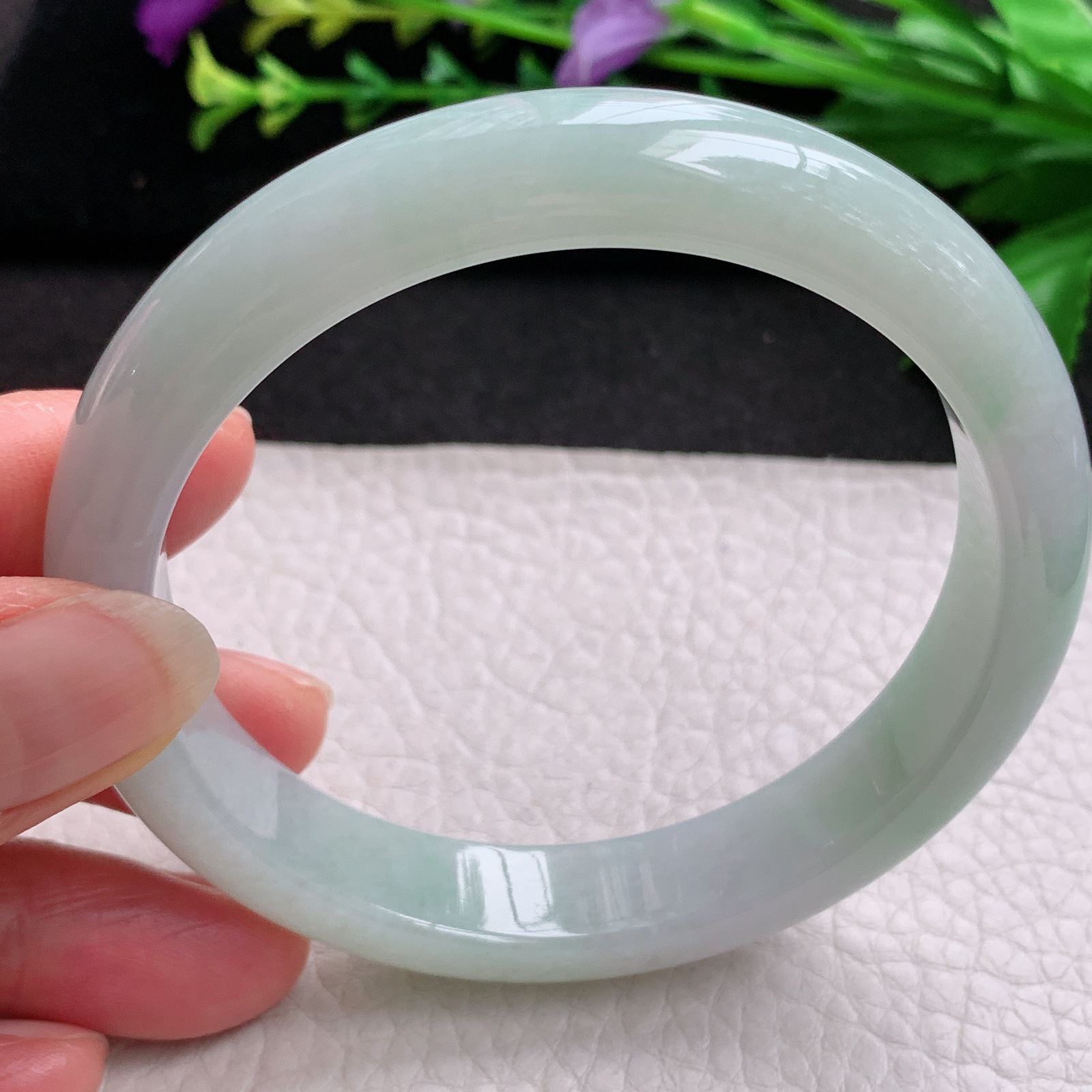 xo实拍53.5*9美人镯 天然缅甸翡翠A货玉手镯冰胶飘花圆条玉手环