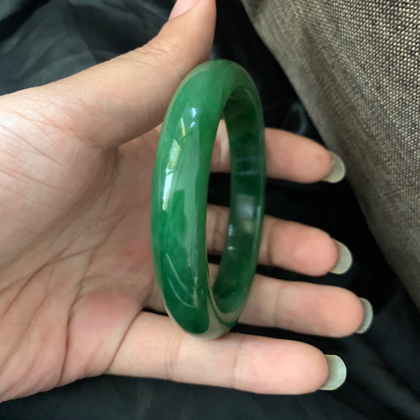61圈口和田玉碧玉阳绿色手镯,和田玉61圈口手镯,镯型古朴典雅。在诗情画意的雨巷相遇,你是我腕间的一