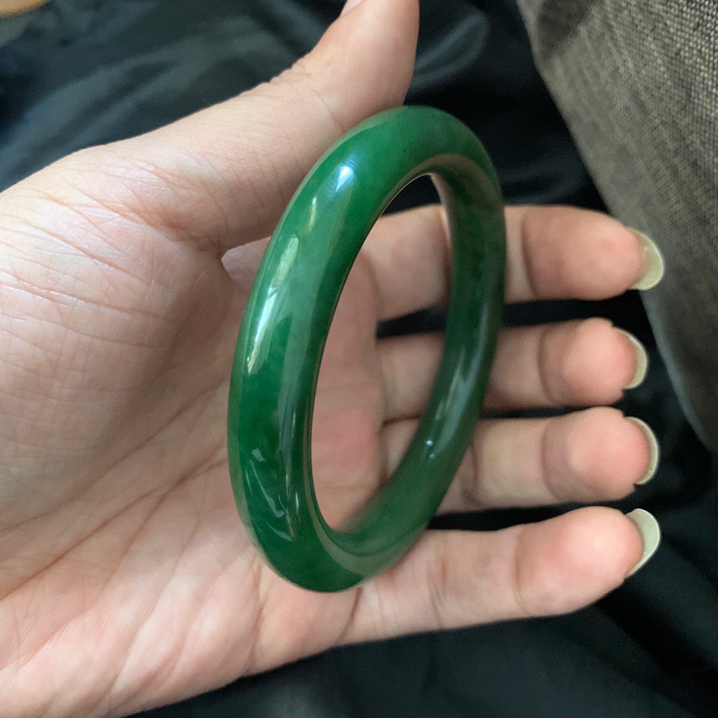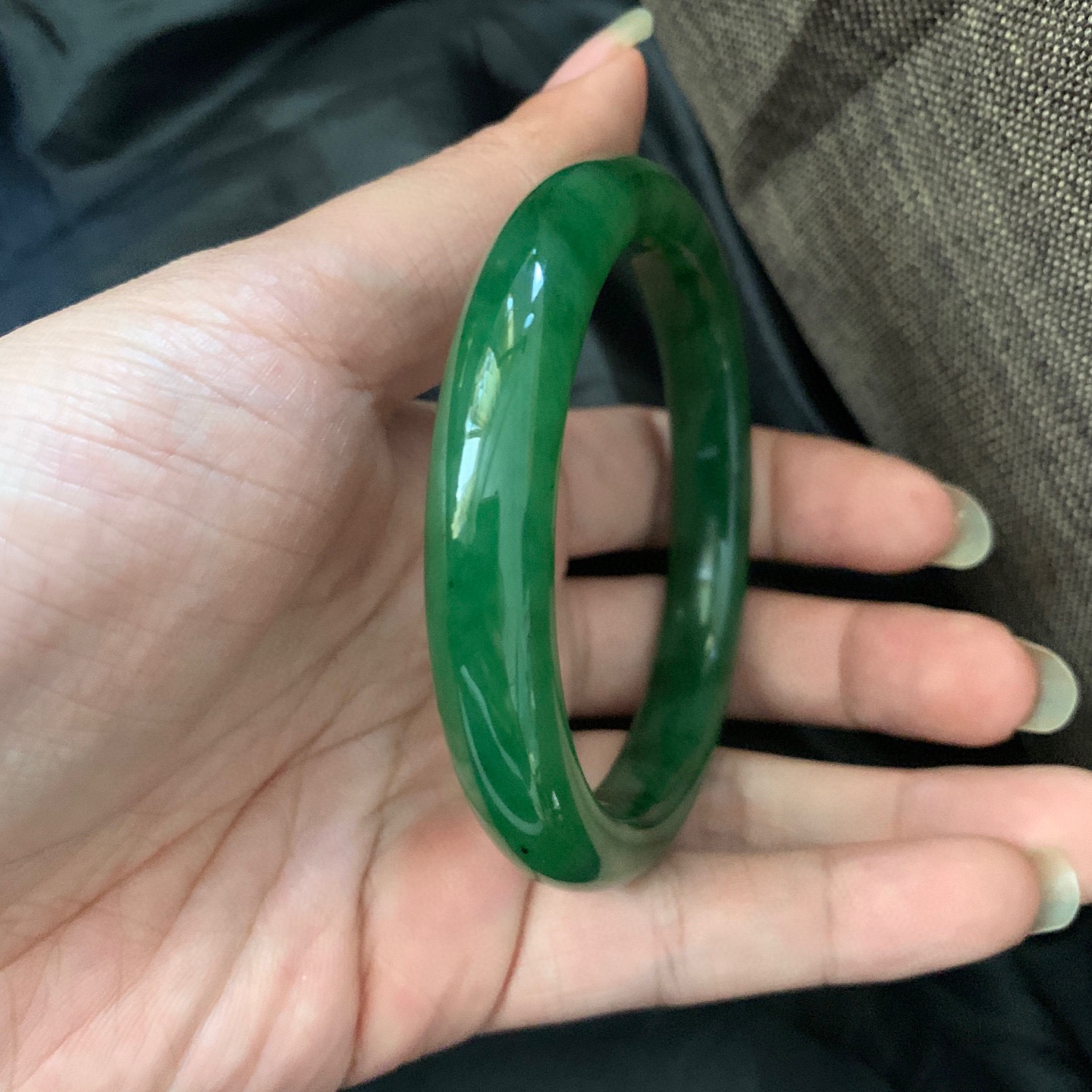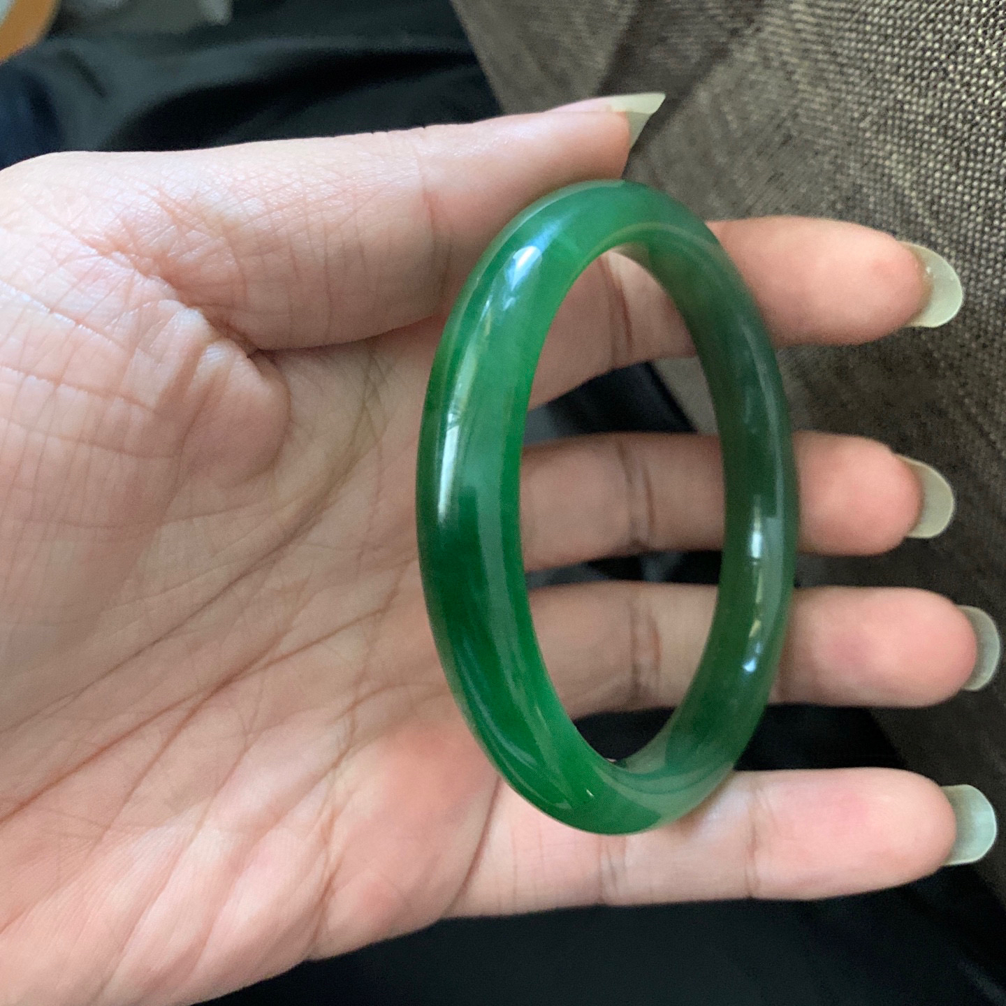 63圈口和田玉碧玉菠菜绿手镯,和田玉63圈口手镯,镯型古朴典雅。在诗情画意的雨巷相遇,你是我腕间的一