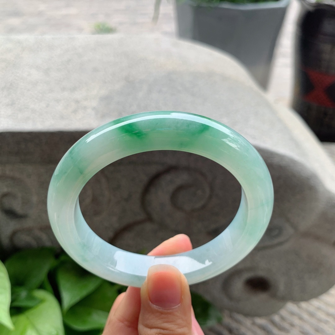 A货天然翡翠冰糯种飘花手镯59圈重量52.54 4月23日