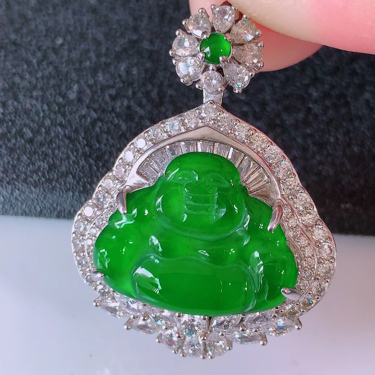 18K金镶嵌冰种翡翠保平安宝宝佛吊坠,玉质莹润,佩戴佳品,#49.11