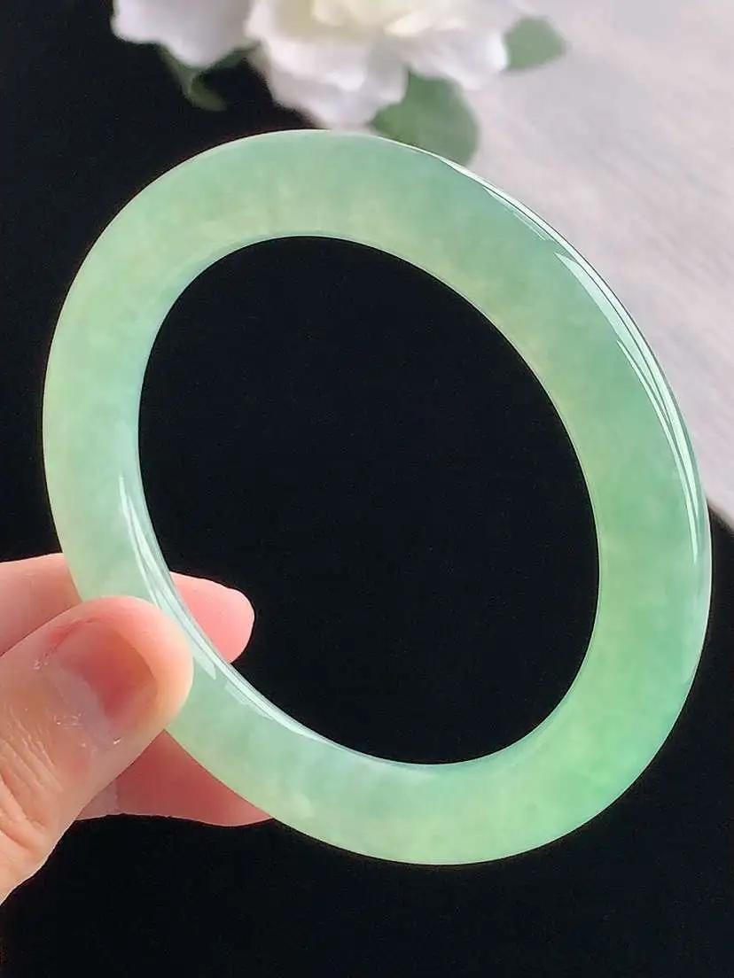 a货翡翠老坑冰种飘绿半山半水正装正圈手镯56-57圈口 尺寸56.8×12.8×9mm 重量66.9