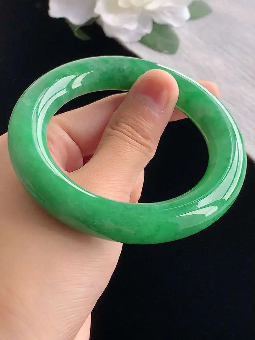 a货翡翠老坑冰种满绿胖圆条手镯54-55圈口 尺寸54.8×12.4mm 重量80.06g 102