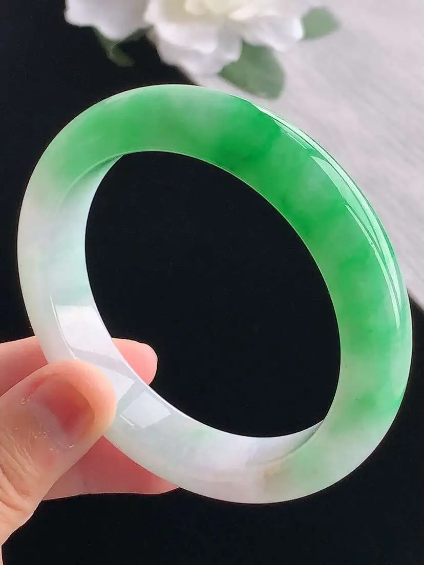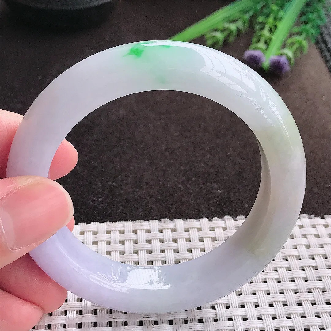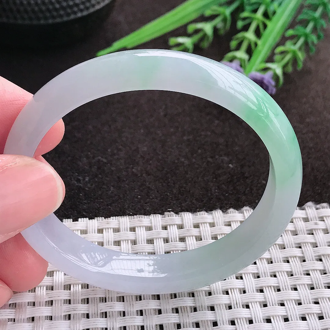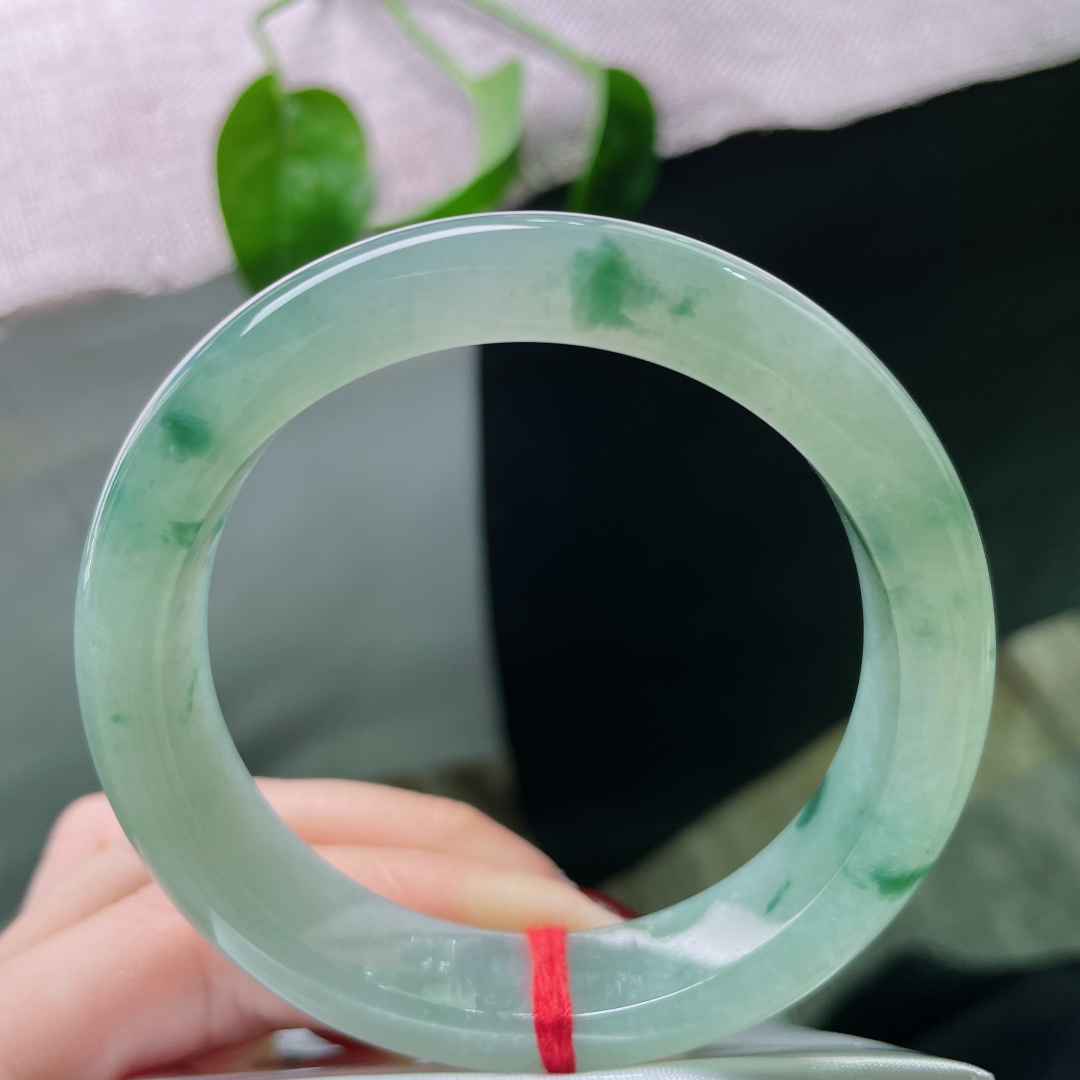圈口56.3,天然A货翡翠飘花手镯,料子种水好,色泽靓丽,版型好,无纹裂