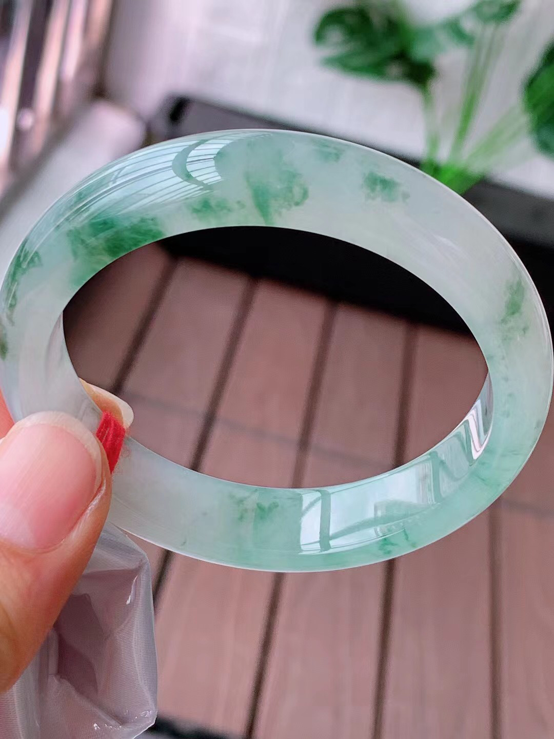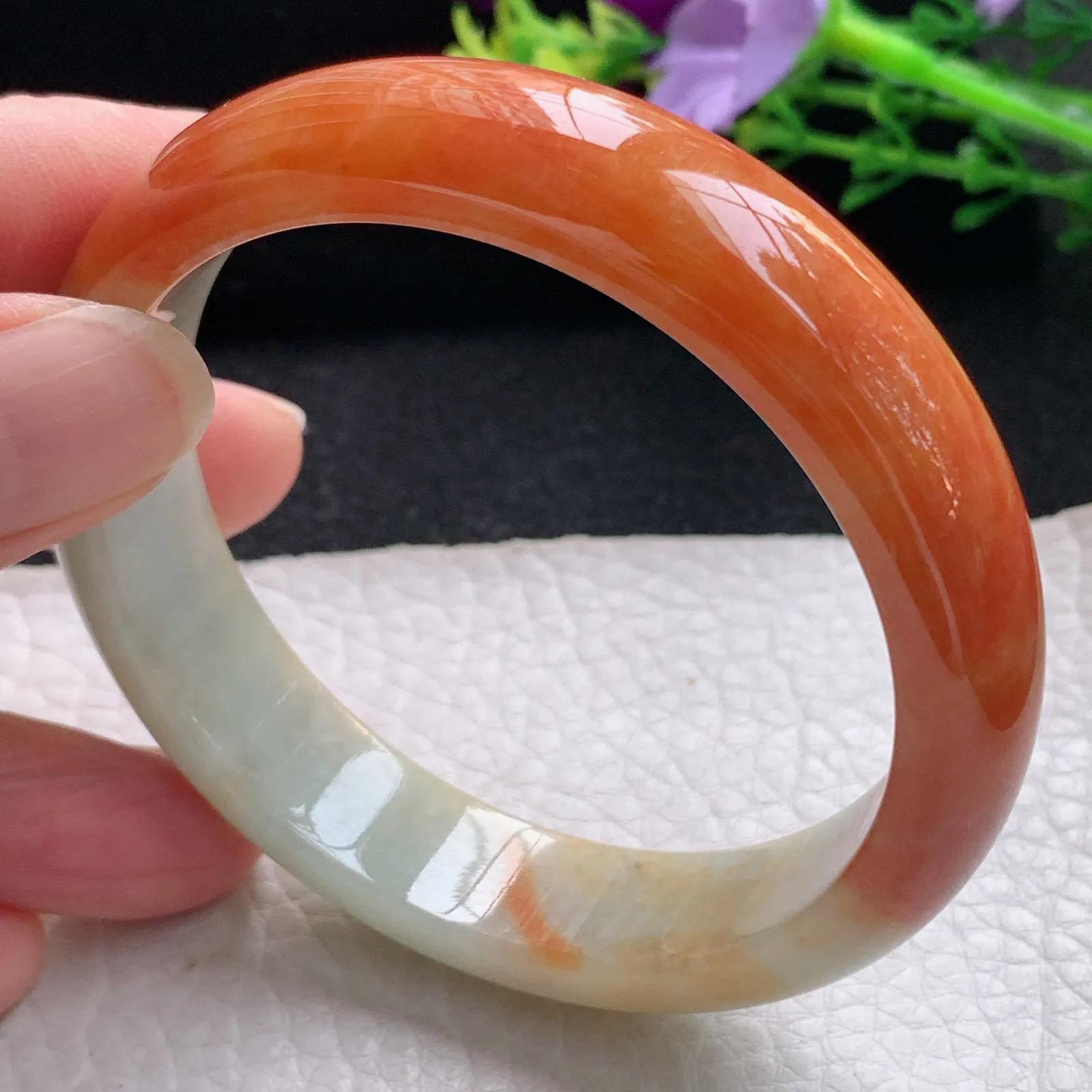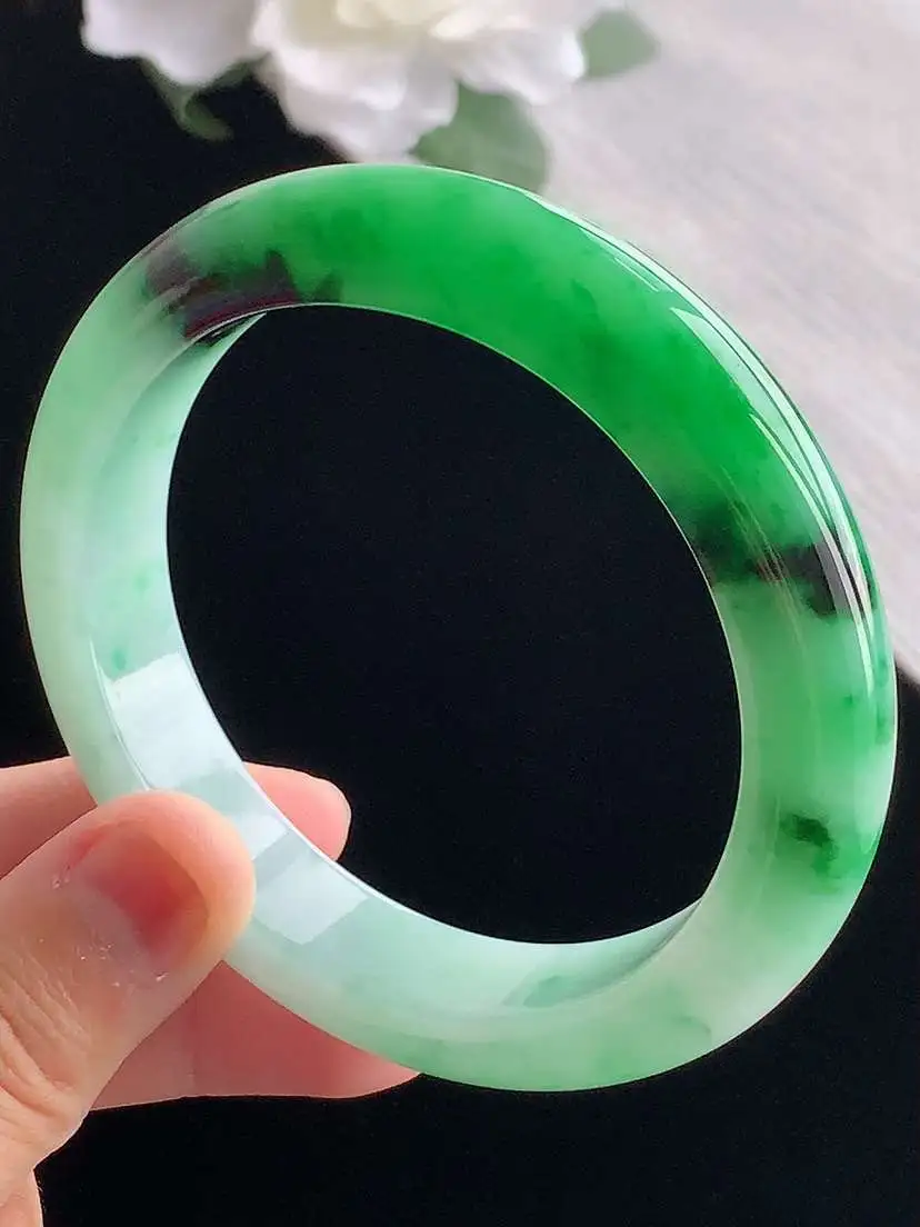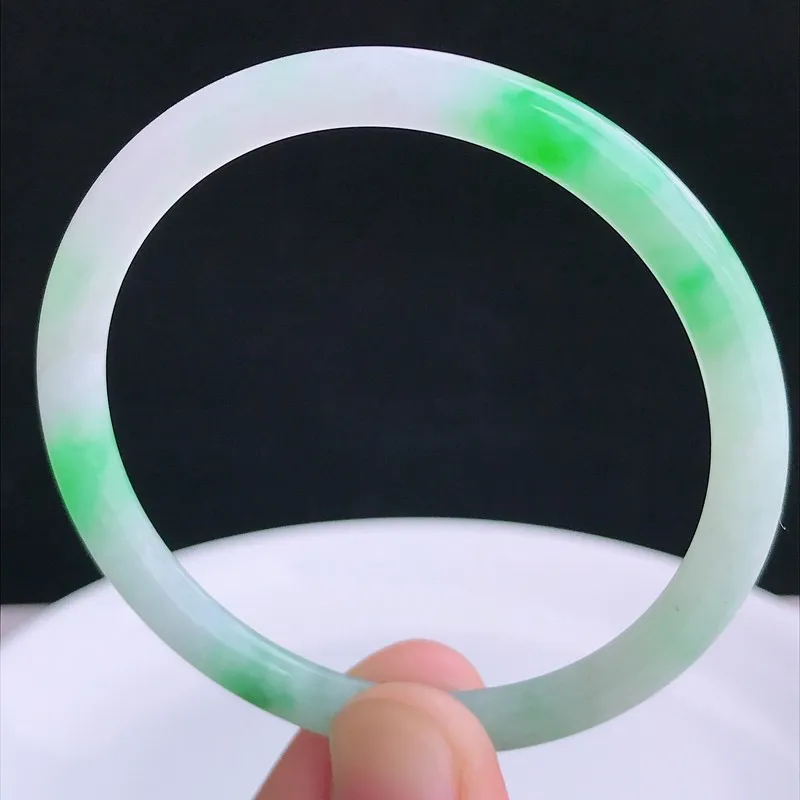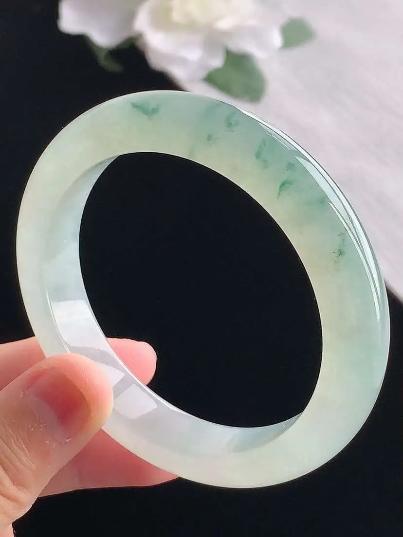 圈口56.3,天然A货翡翠飘花手镯,料子种水好,色泽靓丽,版型好,无纹裂
