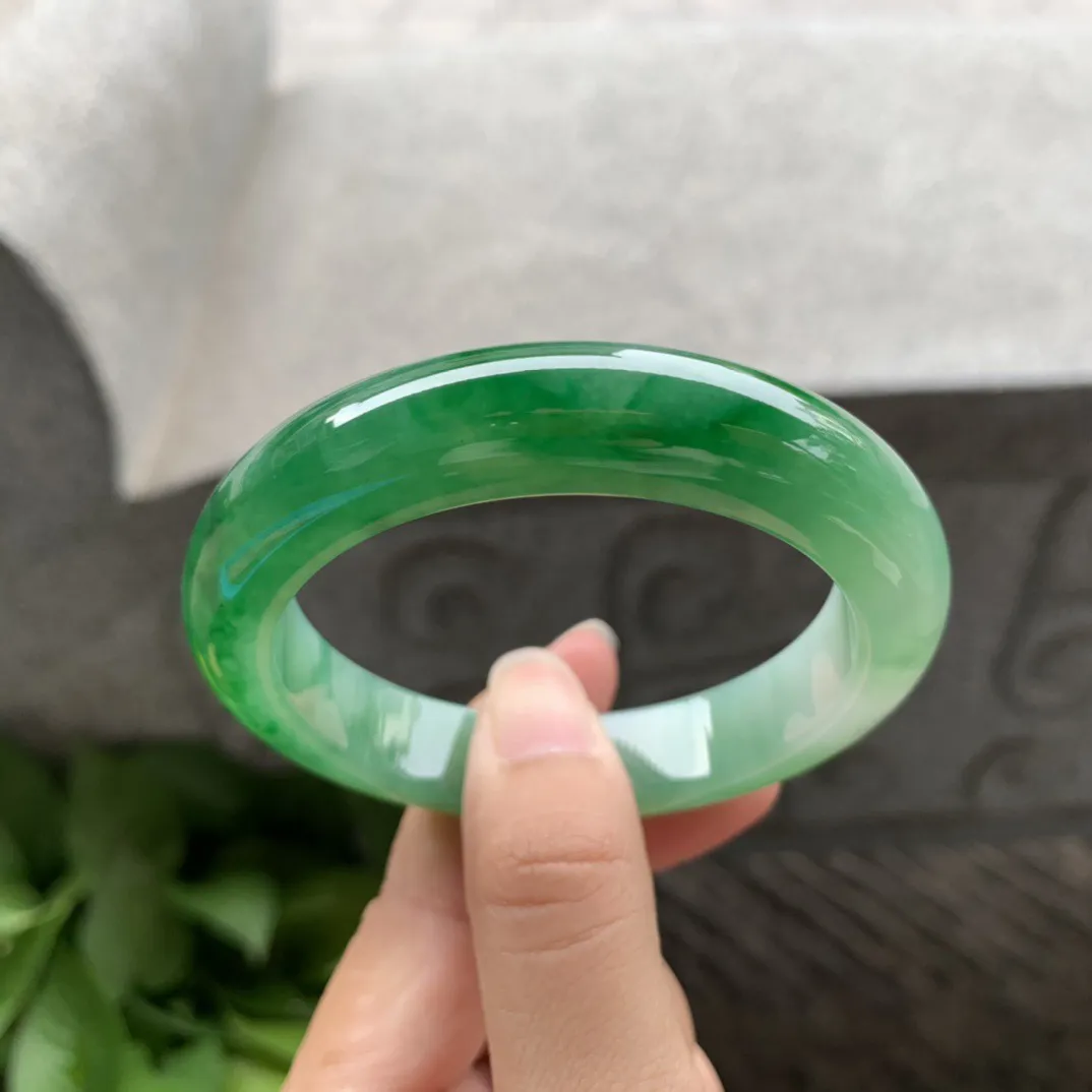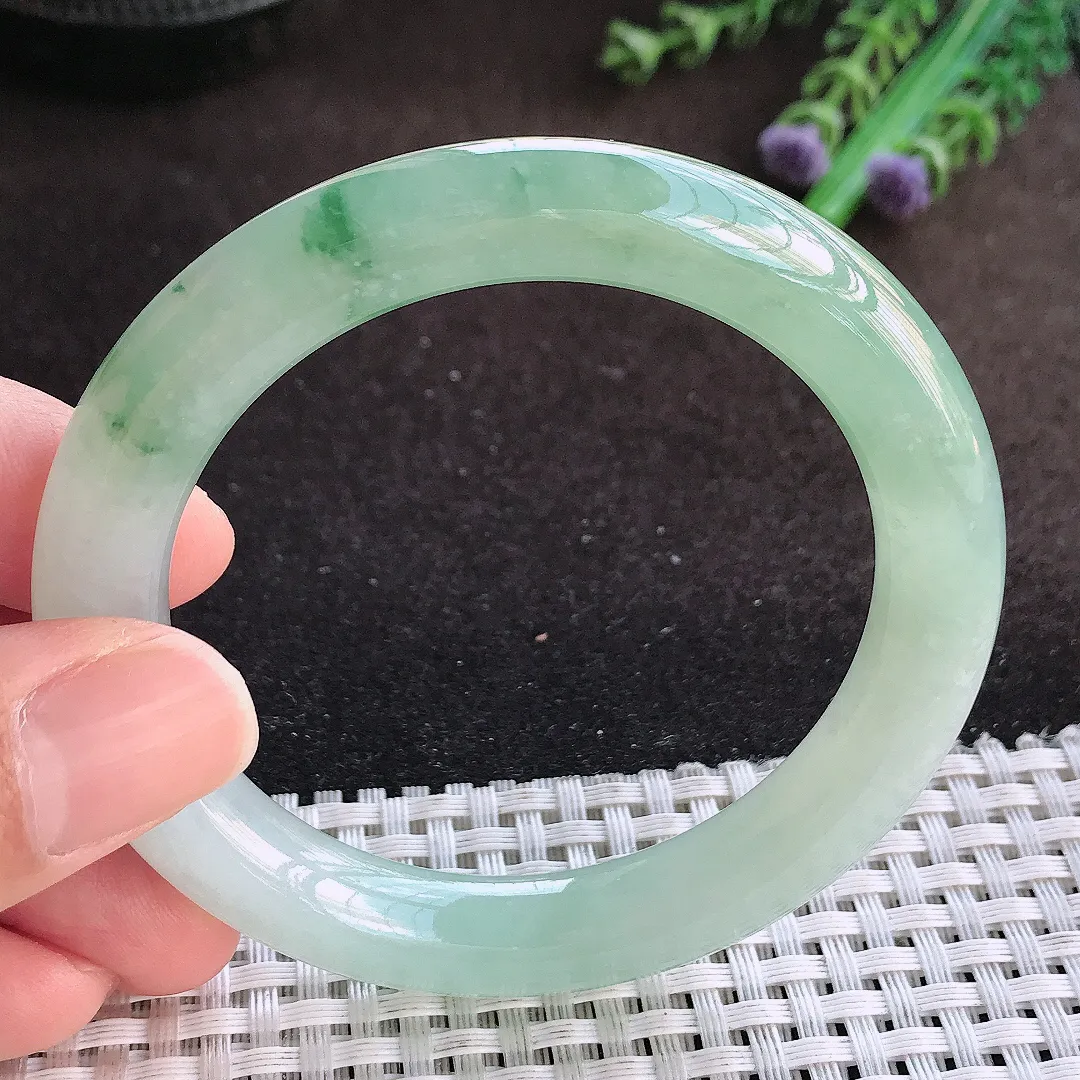 天然a货翡翠54.5/9.8老坑冰胶果冻飘花圆条手镯翡翠玉镯美人镯