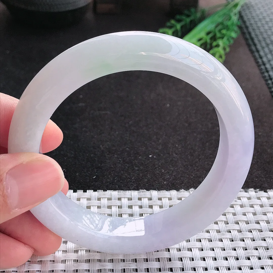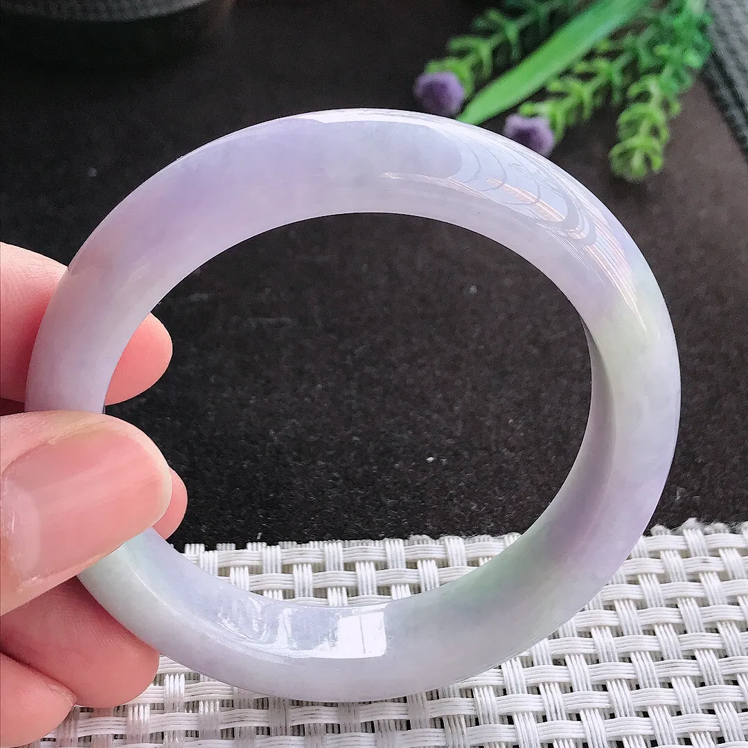 天然A货翡翠55/12.5/8.5老坑秀气温润紫罗兰手镯宽边玉镯
