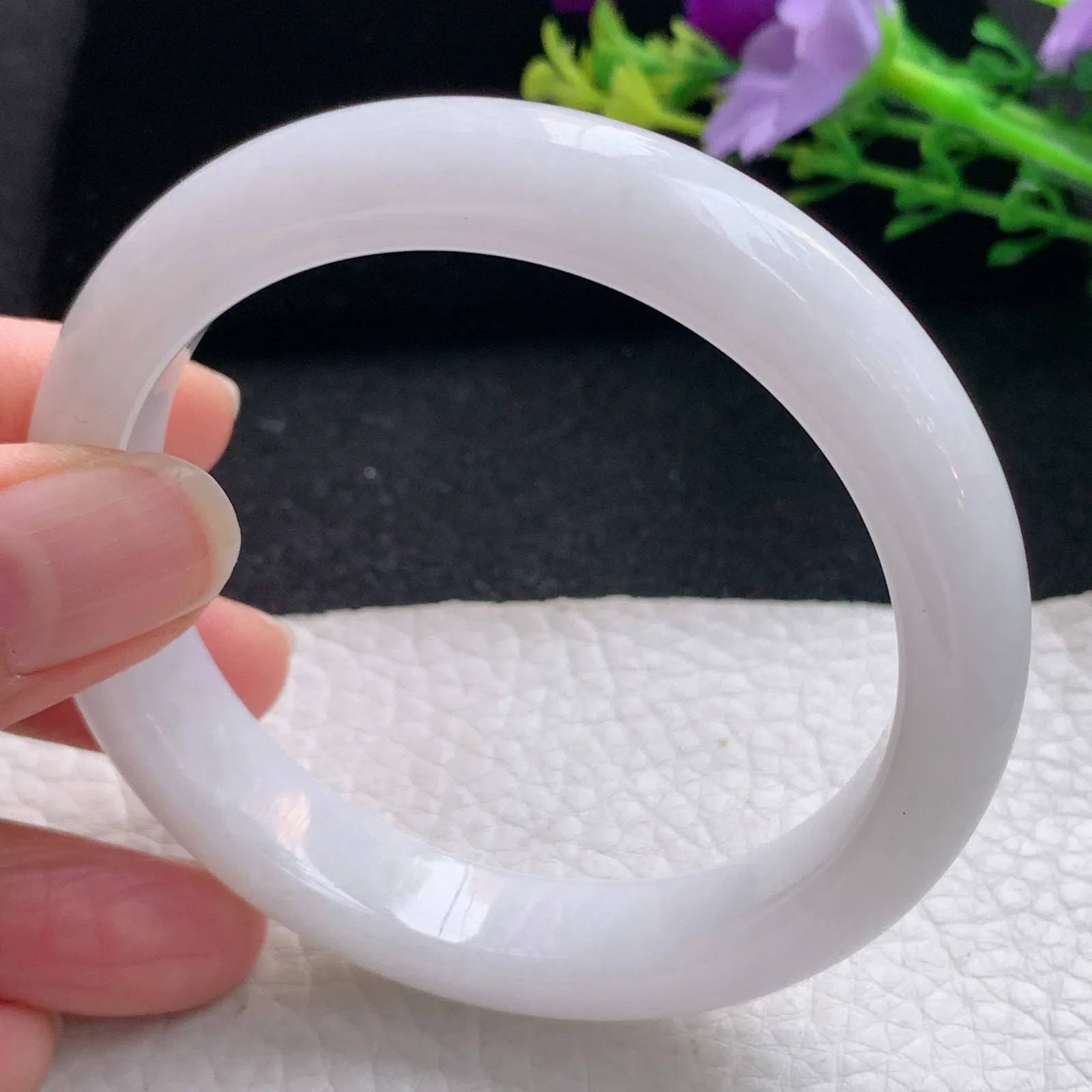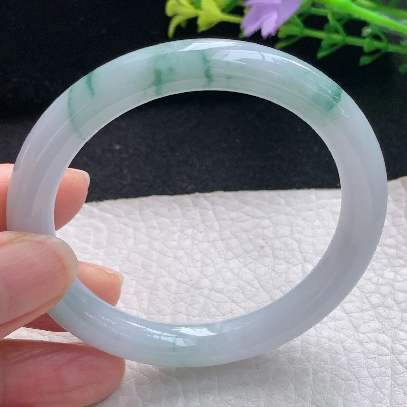 mq自然光53*8.4*8.2美人镯 天然缅甸翡翠冰飘花圆条珠宝玉手镯 叮当镯