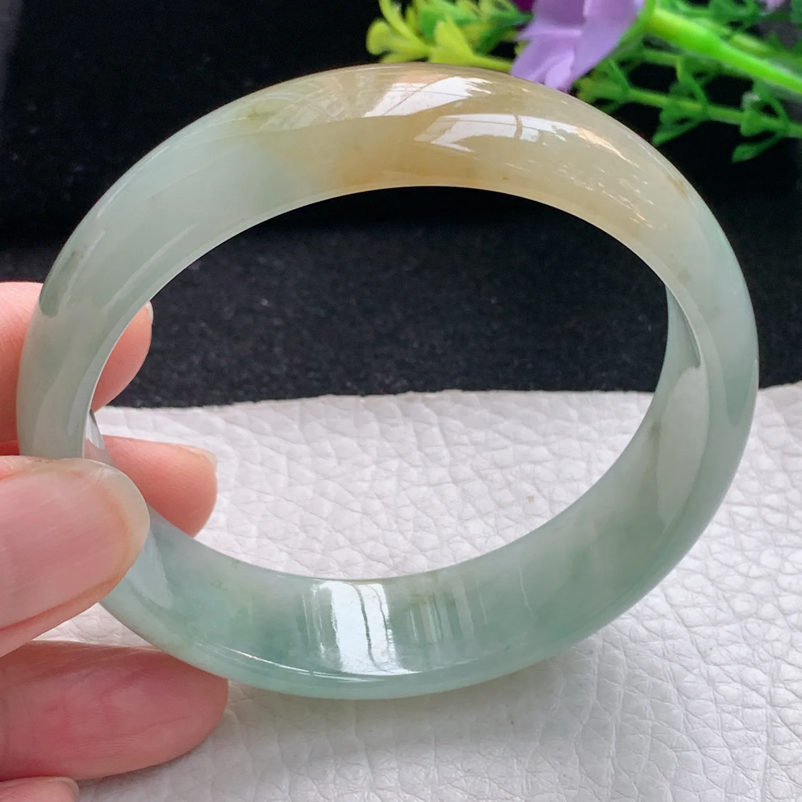 mq自然光56.5*13*7.2平安镯 天然缅甸翡翠双彩宽边珠宝玉手镯