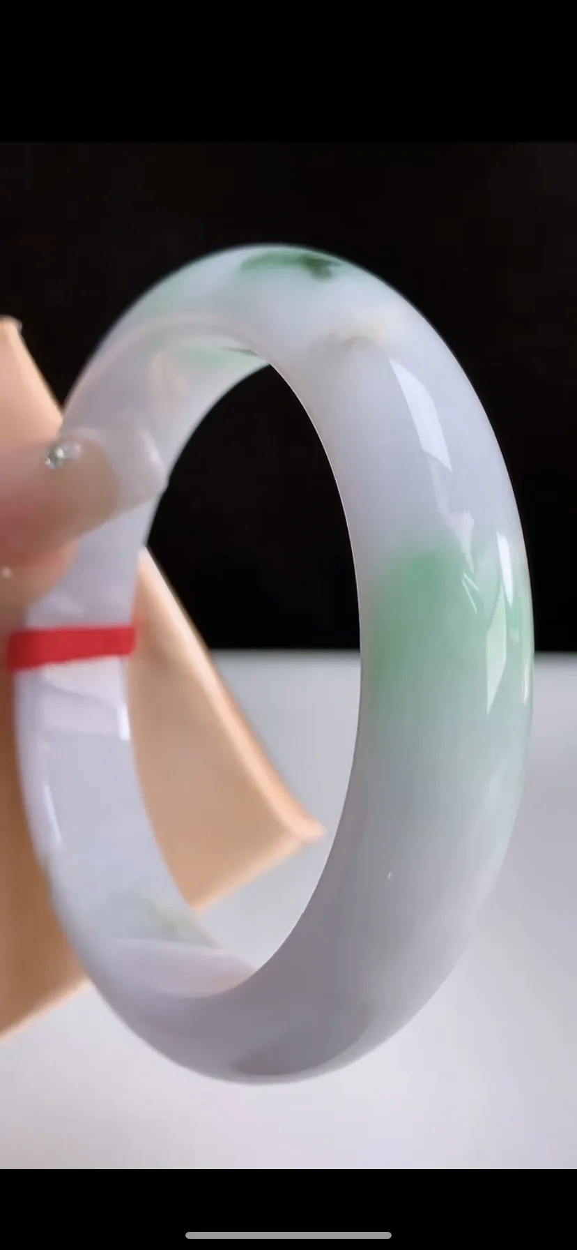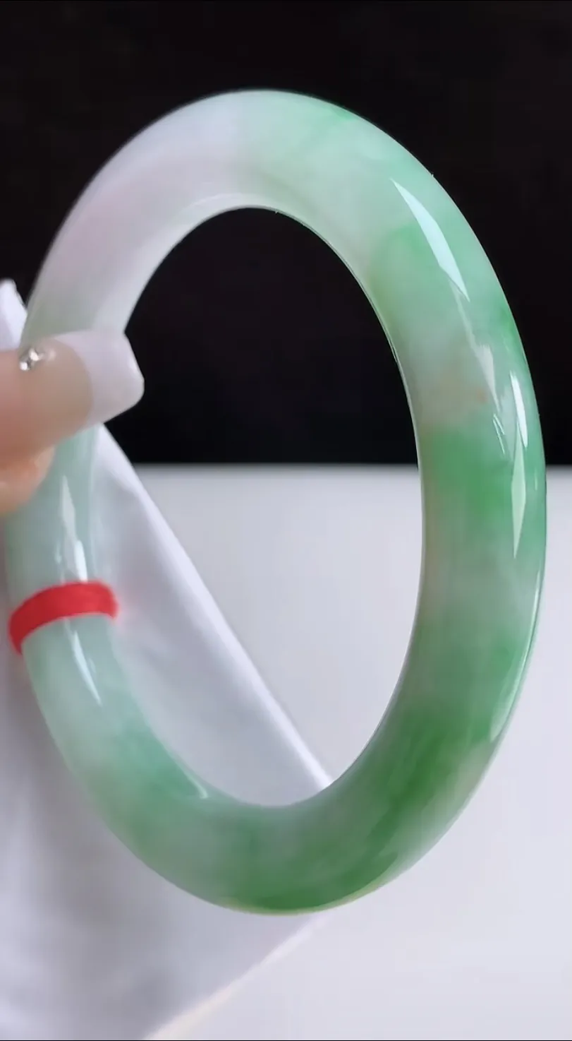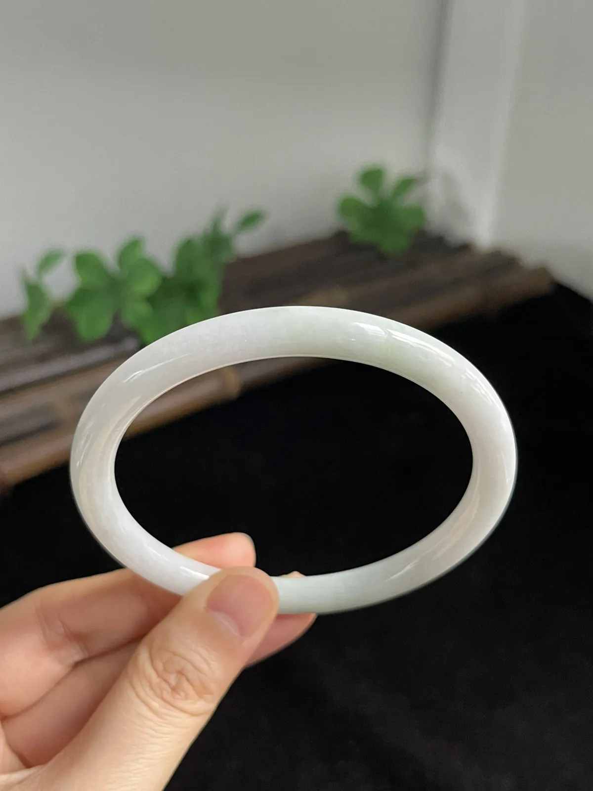 正圈57.2圈口,翡翠手镯,种老肉细,飘三抹绿花灵动漂亮