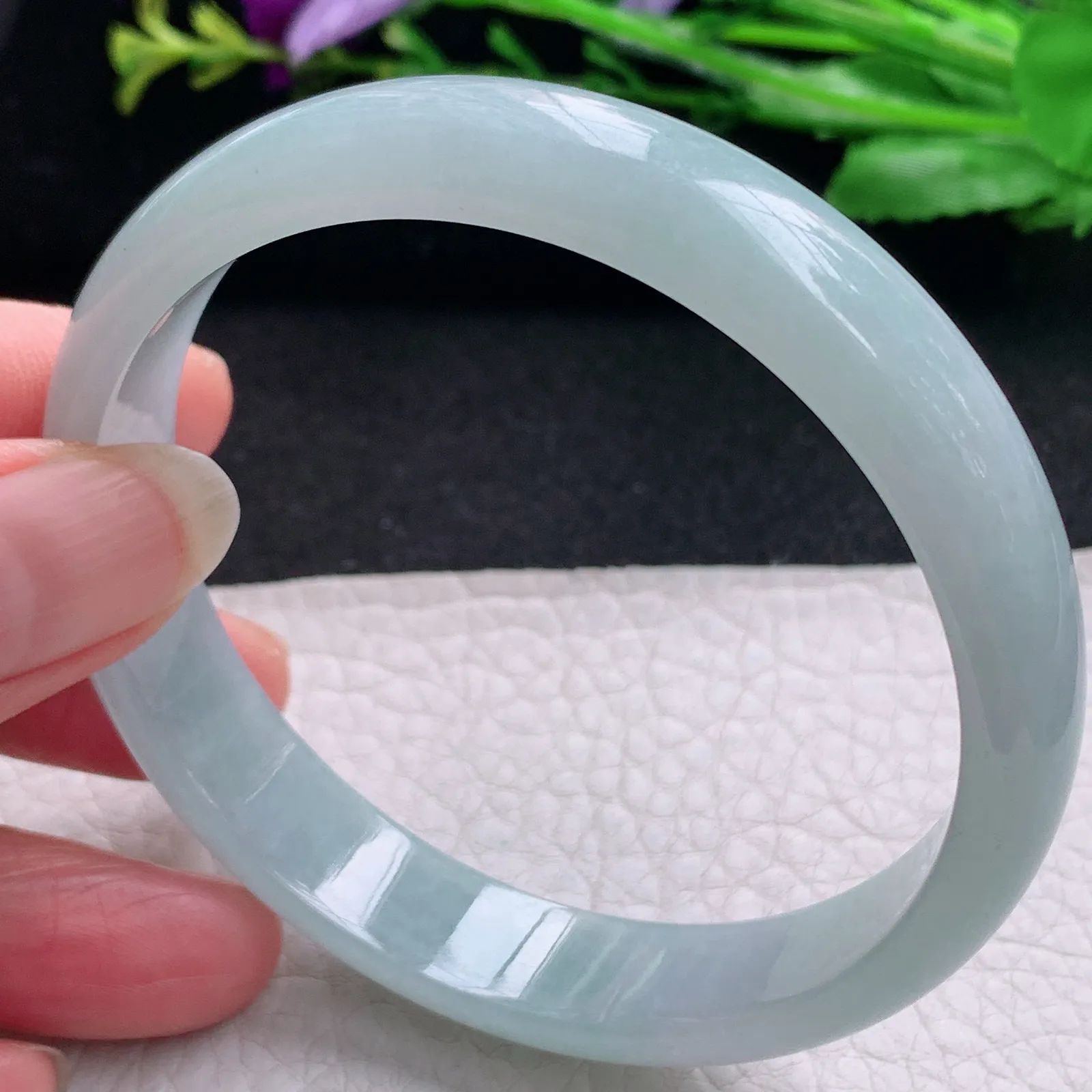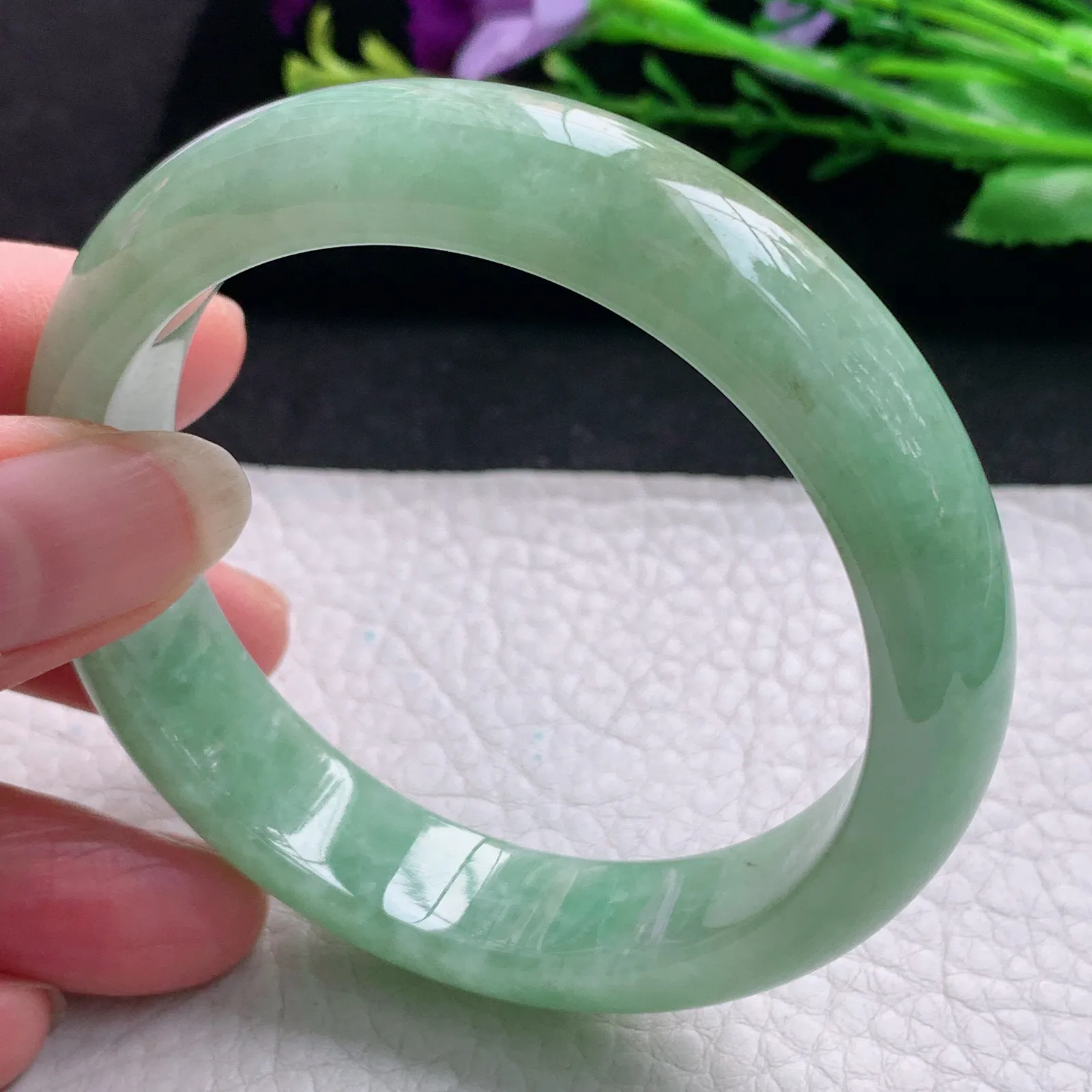 z实拍53*10.8*10.6美人镯 天然缅甸翡翠白月光水润玉手镯纯美圆条叮当镯
