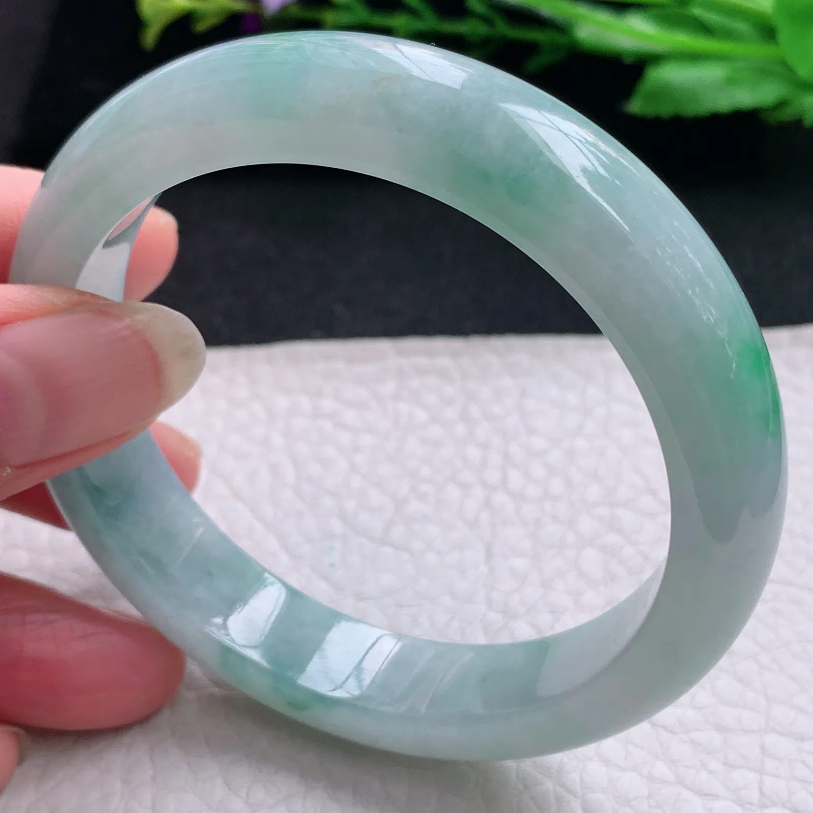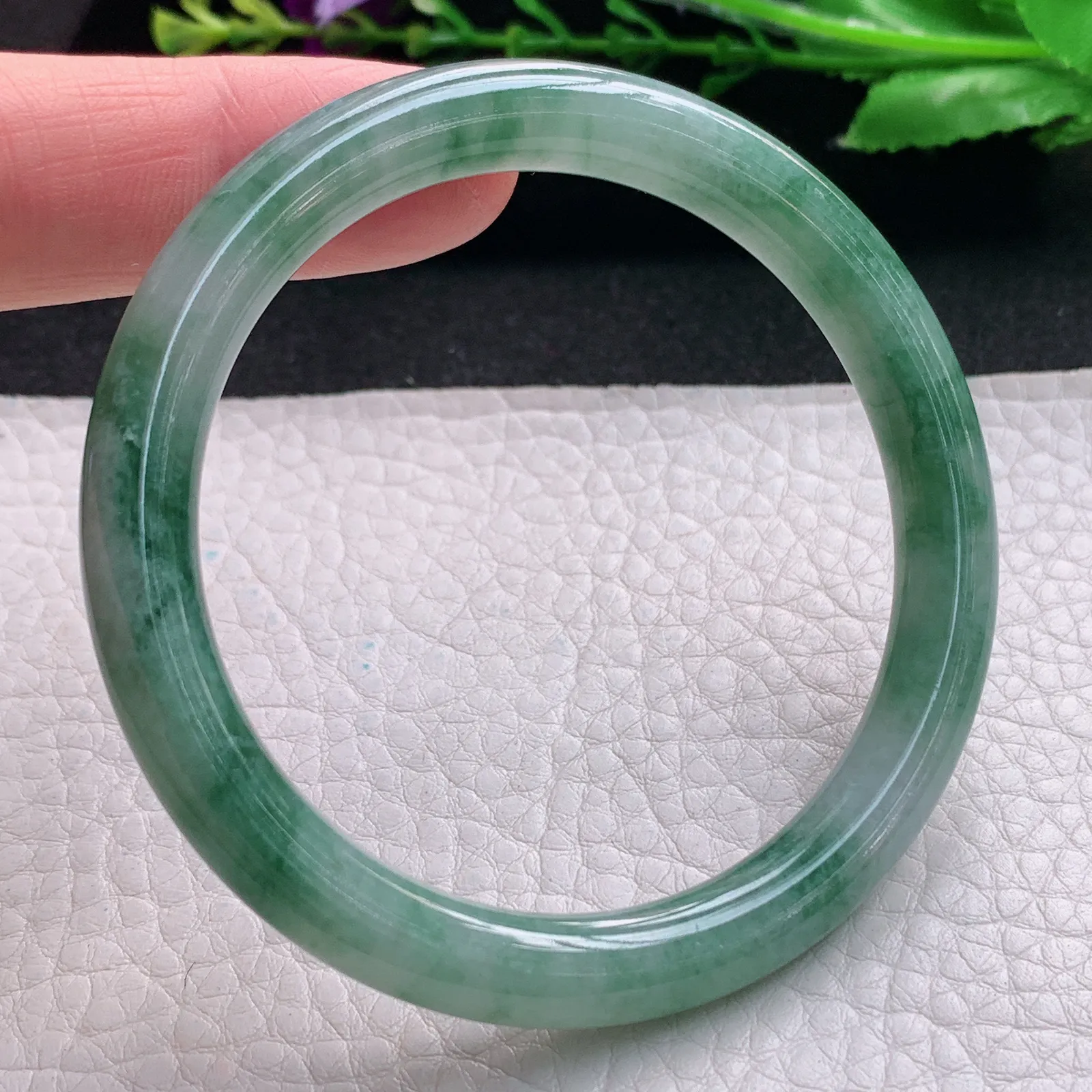 ee实拍58*12.8*8.4平安镯 天然缅甸翡翠飘绿花水润玉手镯正圈玉手环