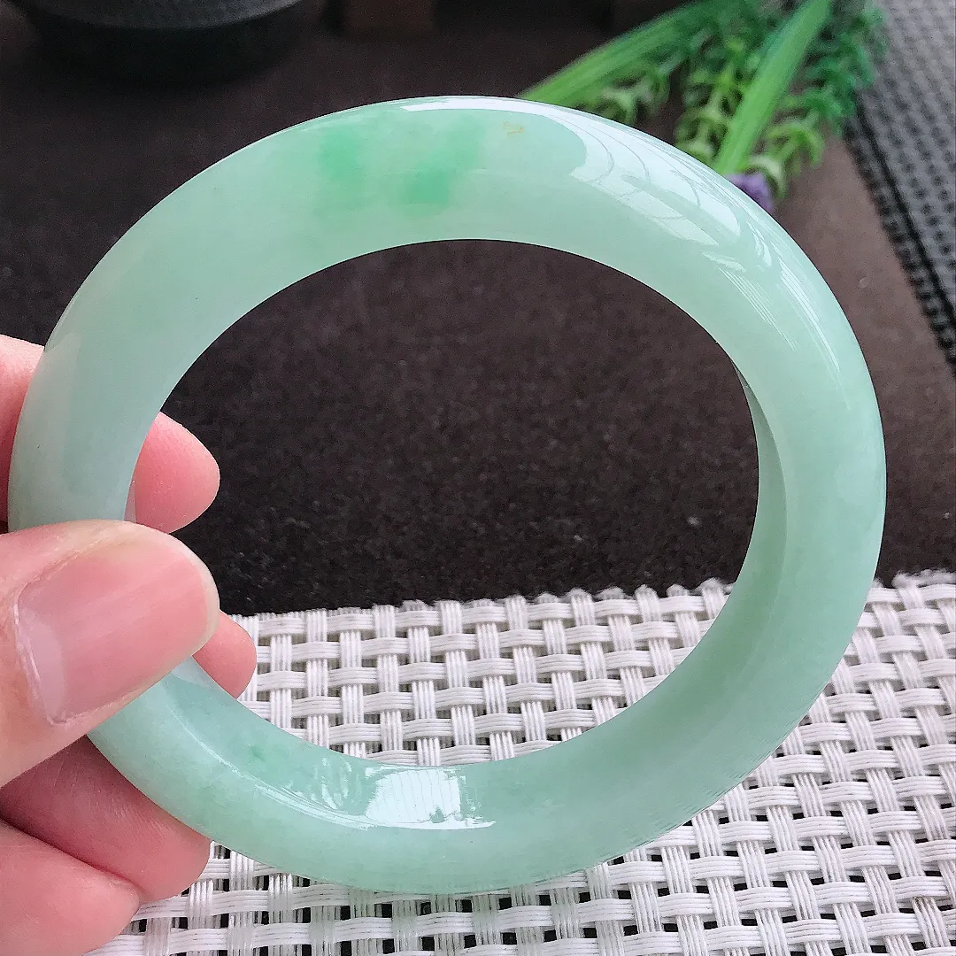实拍A货翡翠52/46/10.8/6.6小圈口老坑冰胶果冻飘绿贵妃手镯宽边玉镯