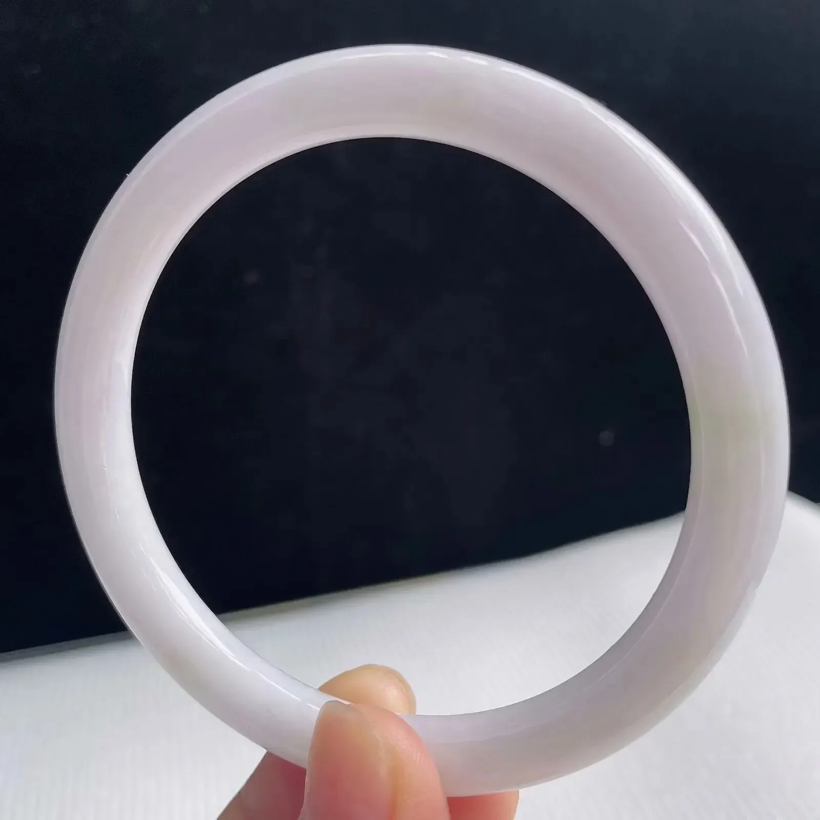 玉镯天然翡翠淡绿好种水55.3mm正圈手镯 54.65克