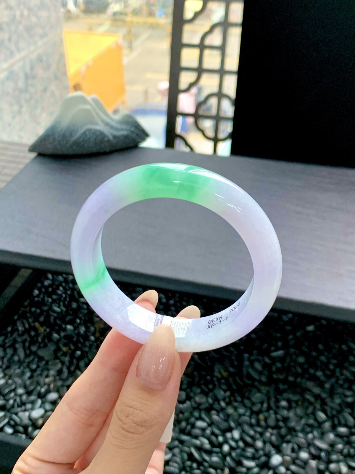 自然光拍摄天然翡翠A货紫罗兰好种水正圈54圈口手镯45.37克