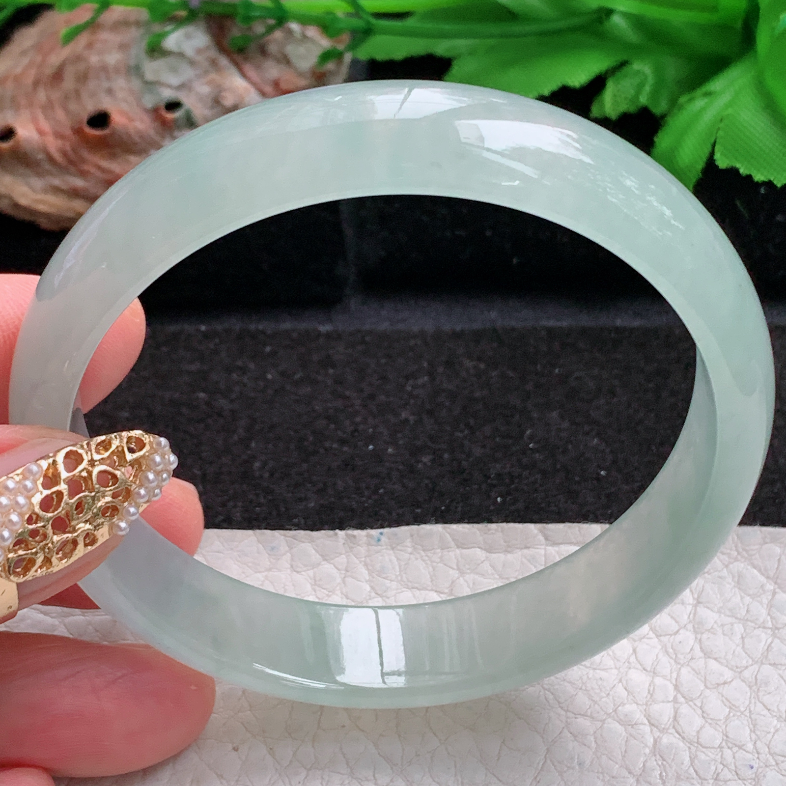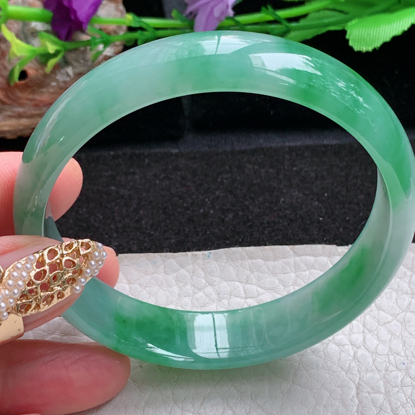 A货天然翡翠冰糯种飘花手镯59圈重量52.54 4月19日