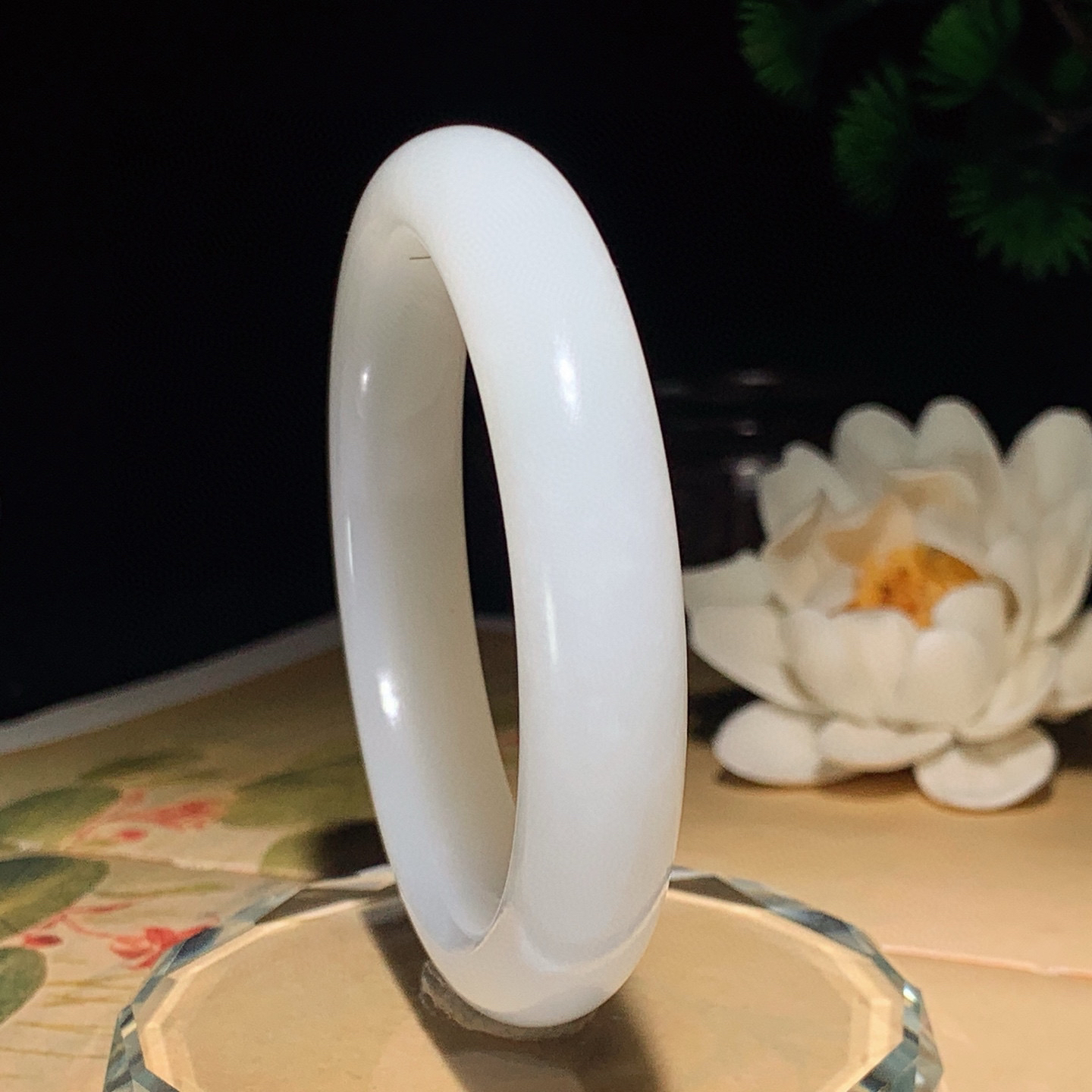 yh白底青58.5*12.3*9.6平安镯 缅甸翡翠a货手镯飘阳绿正圈玉镯子