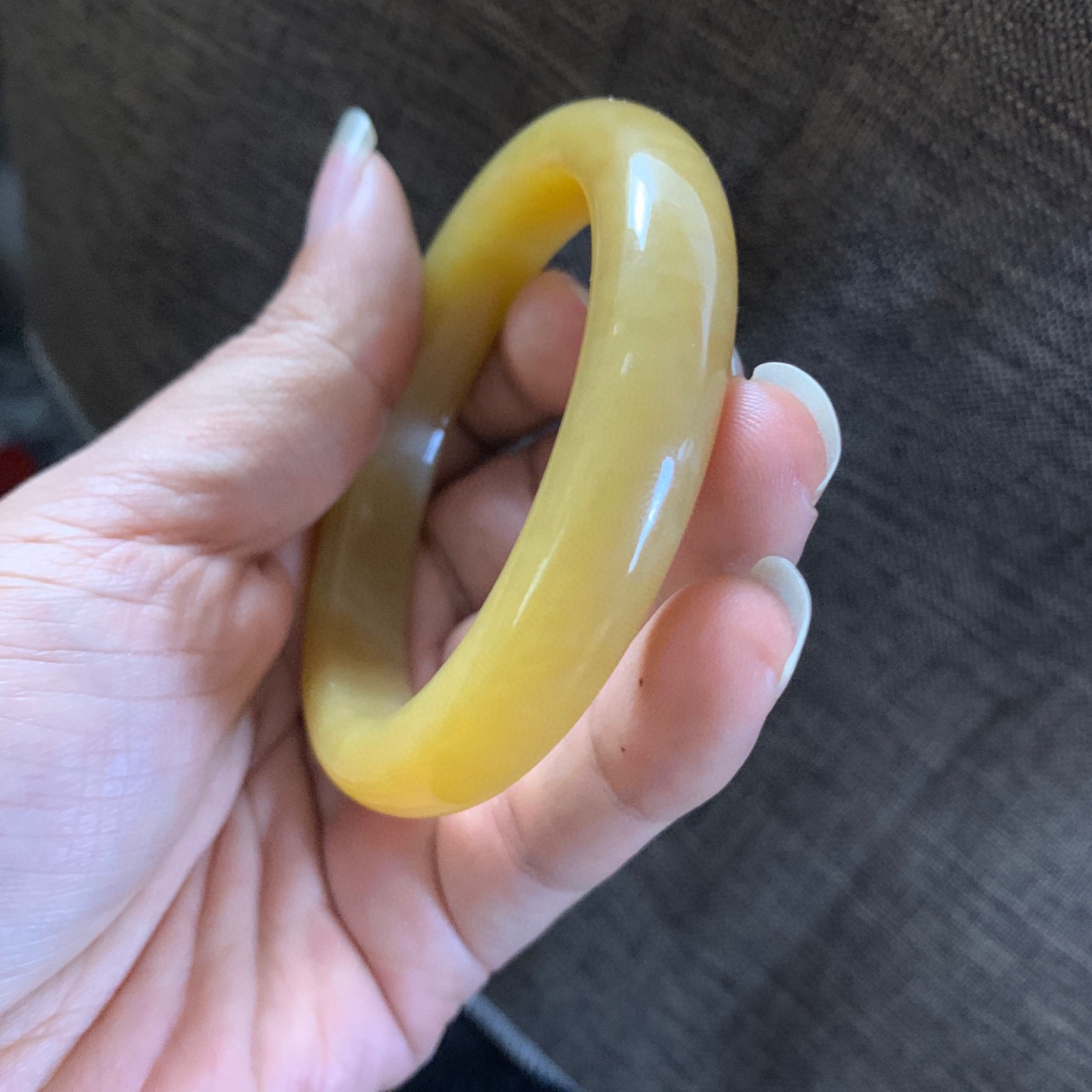 yh大圈口61.8*12.5*9.2平安镯 缅甸翡翠a货手镯冰飘绿正圈玉镯子