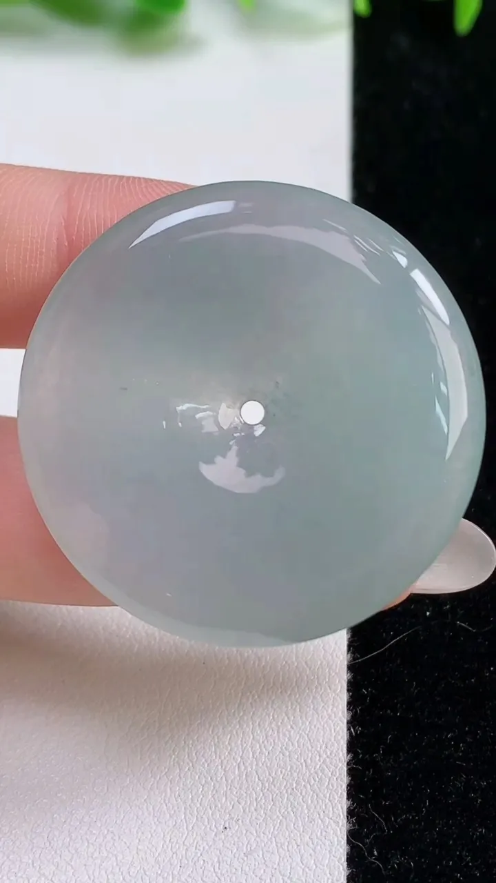 天然A货翡翠种白冰平安扣吊坠,尺寸21.4-5.5,重量:5.61g 10月15日