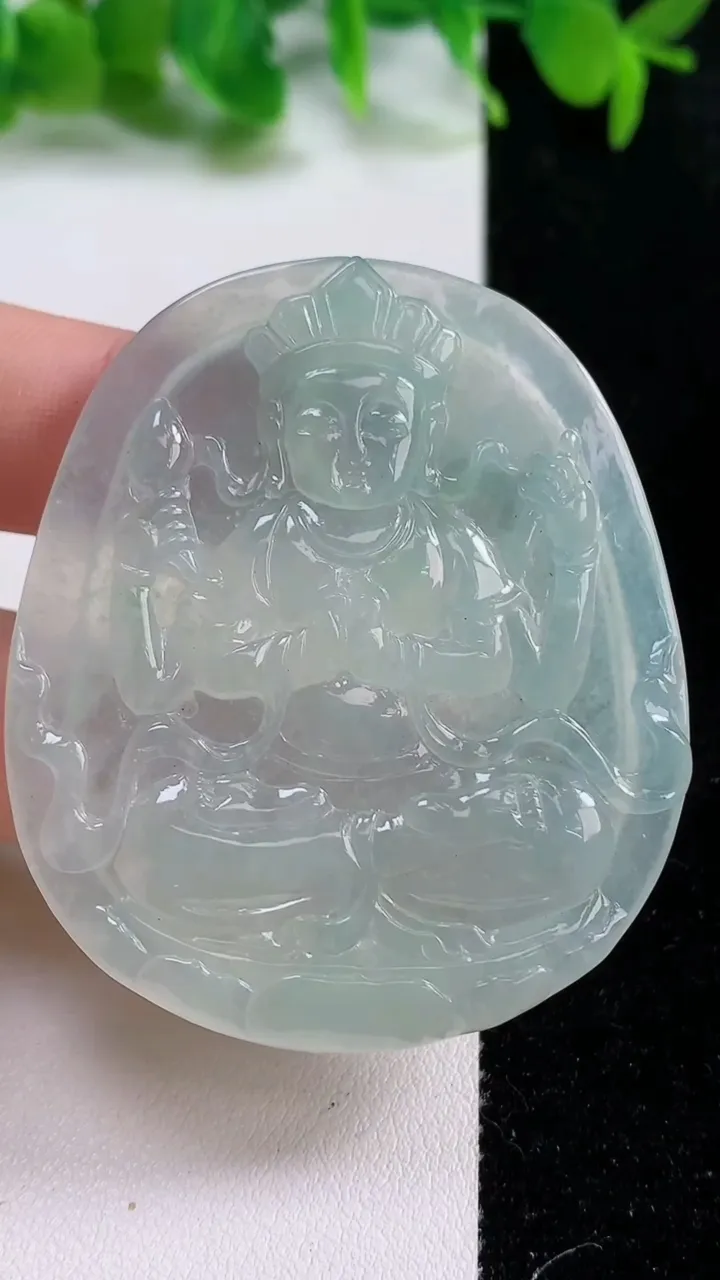 天然A货翡翠千手观音菩萨吊坠,尺寸52.7-46.8-5,重量:23.92g 10月15日