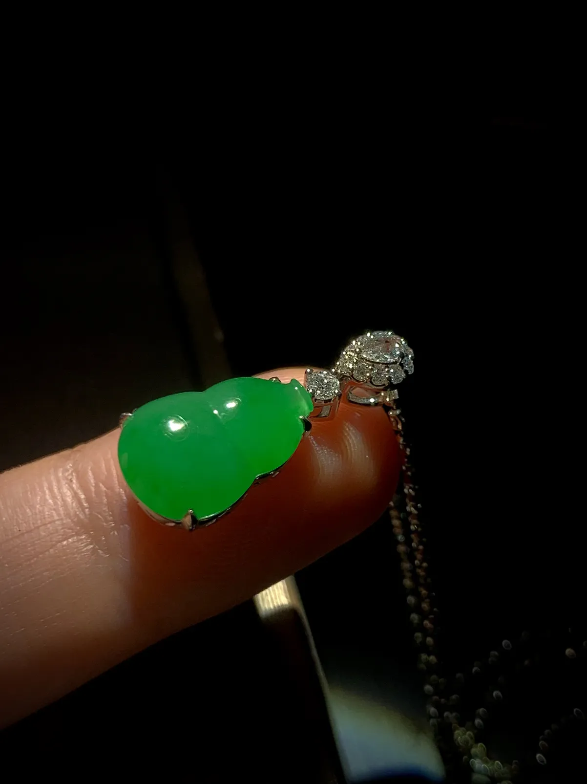 绿葫芦,【福禄】, 裸石约15-10.5-4.5mm, 整体24.5-10.5-7.5mm, 18K