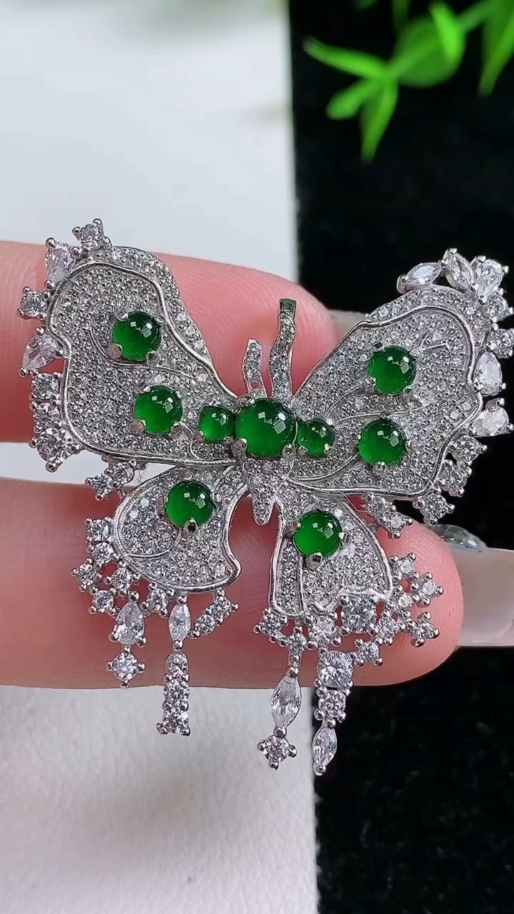 天然A货翡翠蛋面蝴蝶吊坠 胸针,尺寸4.7,重量:8.07g 3月18日