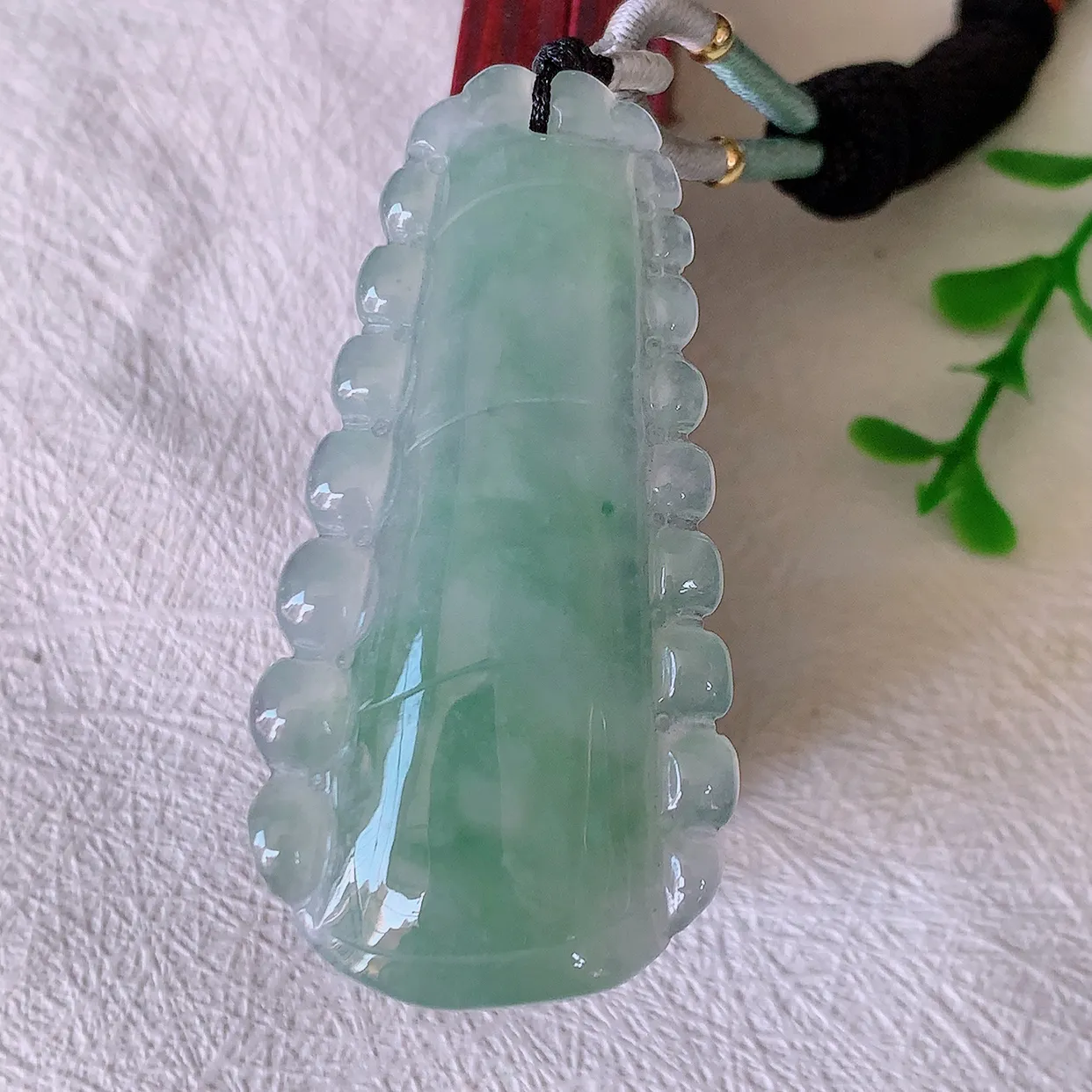 自然光实拍,冰种飘花翡翠竹节吊坠。竹节寓意“节节高,官运亨通,前程似锦,水润莹泽,清秀高雅, 佩戴精