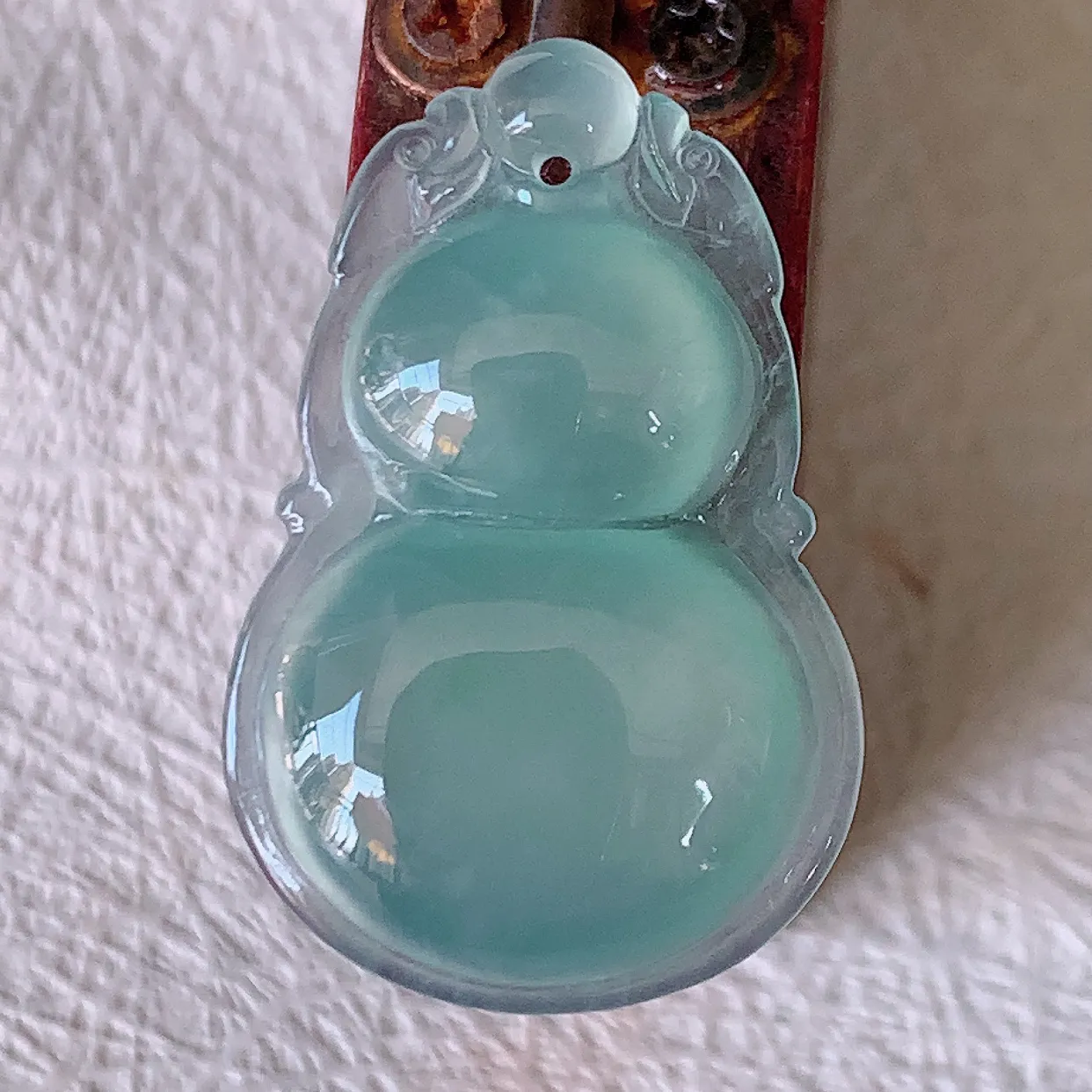 自然光实拍,冰种翡翠葫芦吊坠,葫芦寓意福禄双全,财源滚滚,饱满, 清新脱俗, 佩戴效果优雅迷人!#5