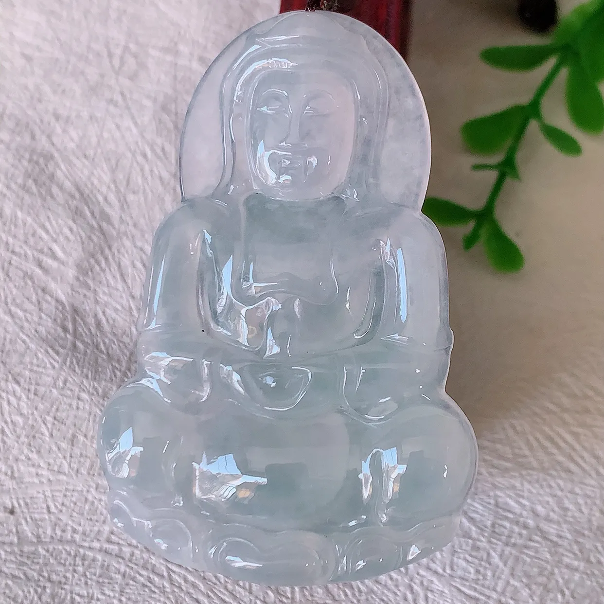 自然光实拍,冰种翡翠正装观音菩萨吊坠,赐福翡翠观音,冰透,起强玻璃光泽, 观音面相慈祥,雕琢细致,