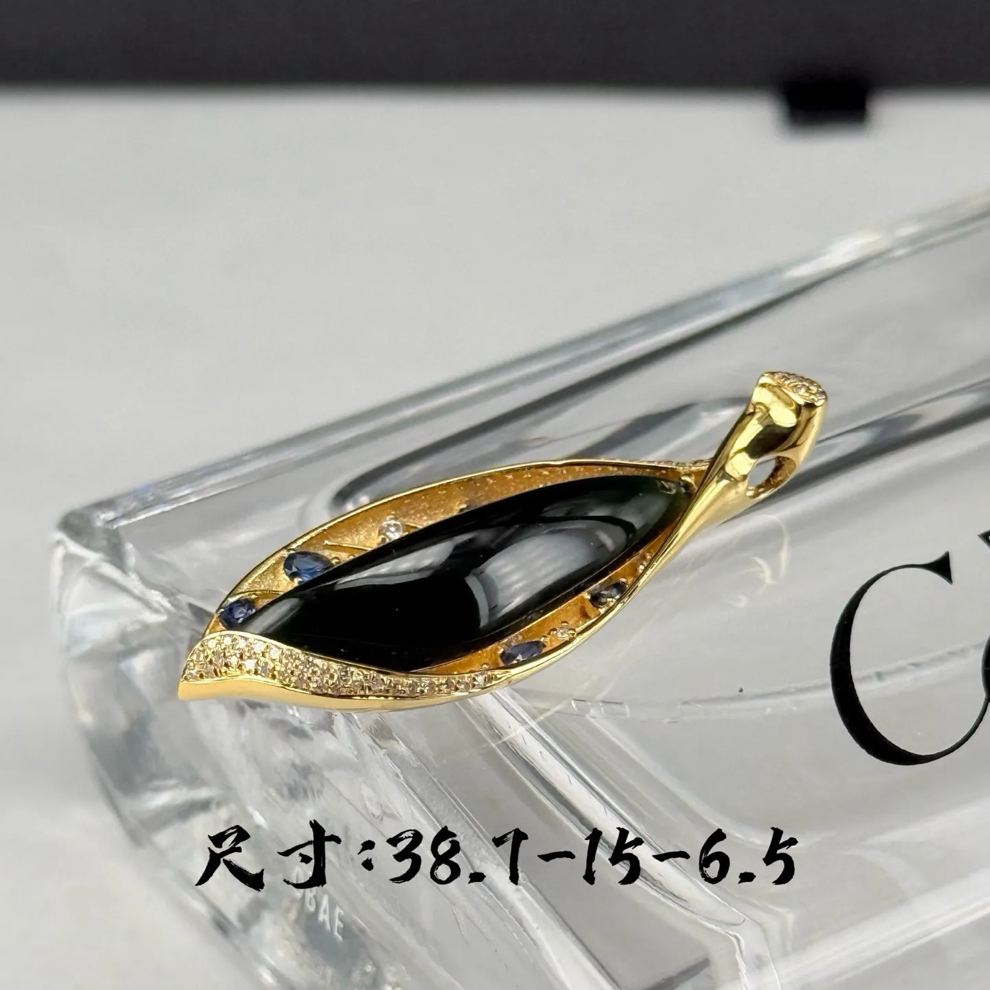 精品18k墨翠吊坠 种好色正 黑度极好 打灯通透 油性十足 尺寸38.7