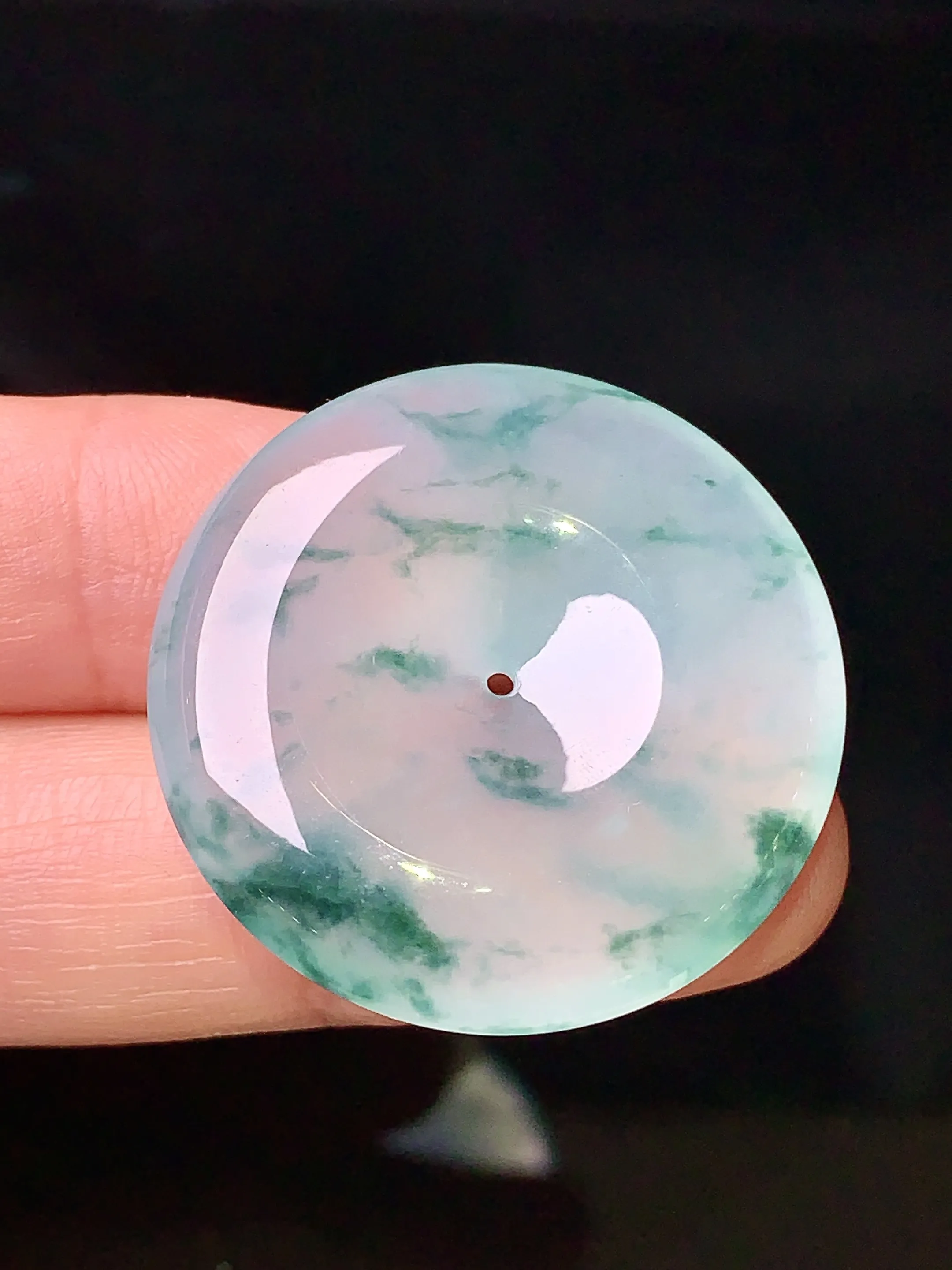 冰种飘绿平安扣吊坠 玉质细腻 色泽清新艳丽 整体尺寸36.3*6