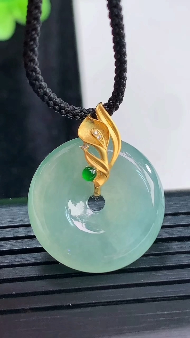 天然A货翡翠冰种飘花平安扣吊坠,尺寸28.5-6重量:9.92g 3月30日