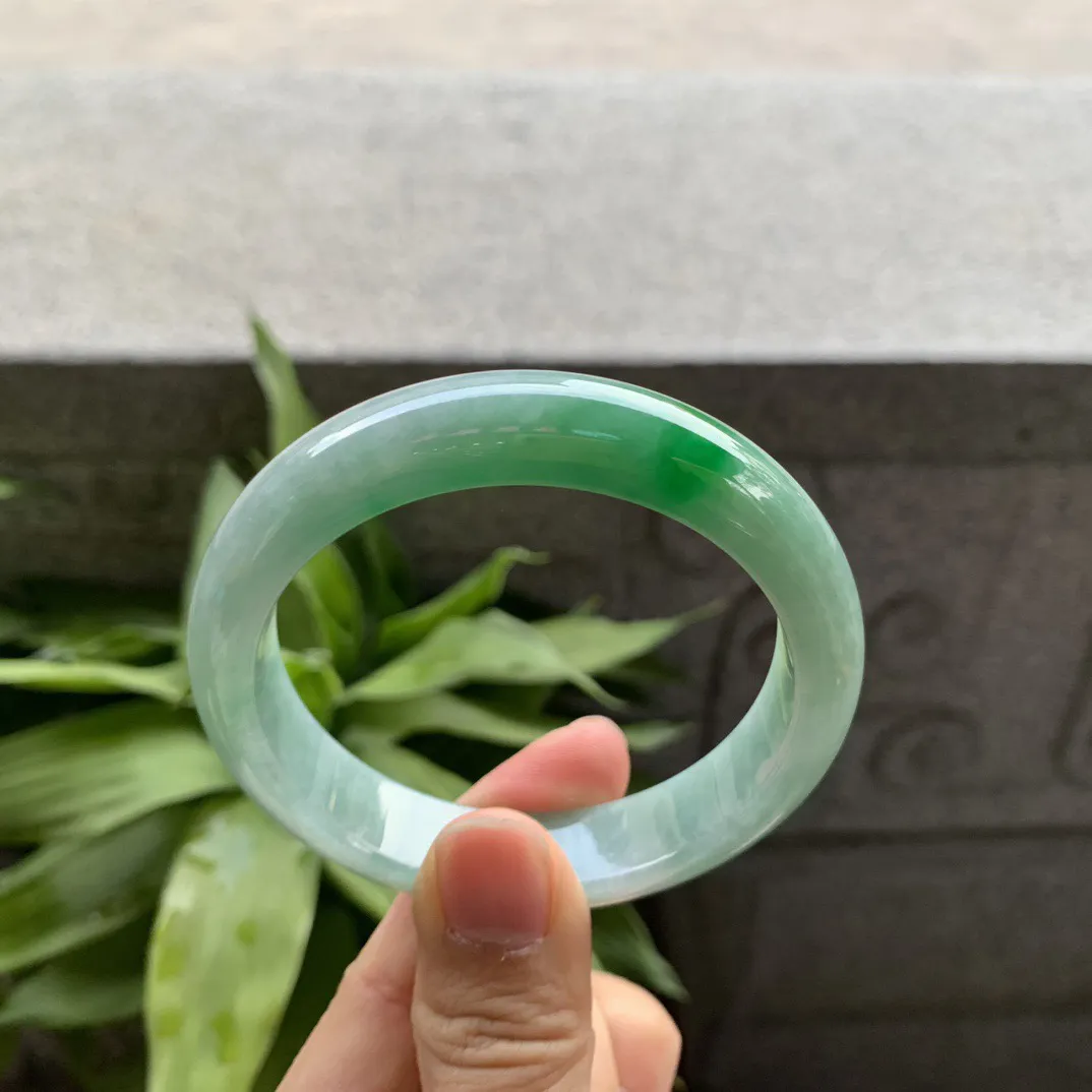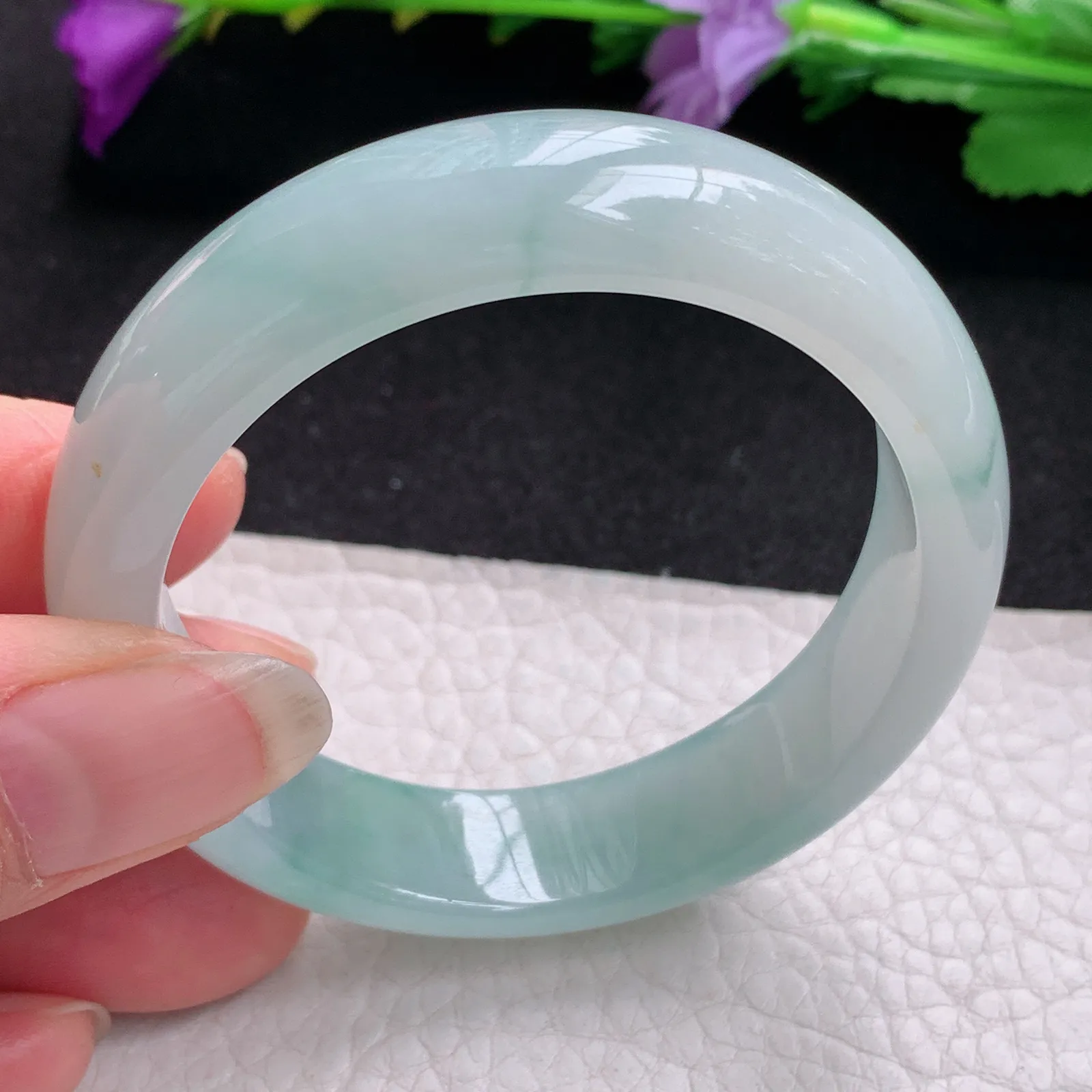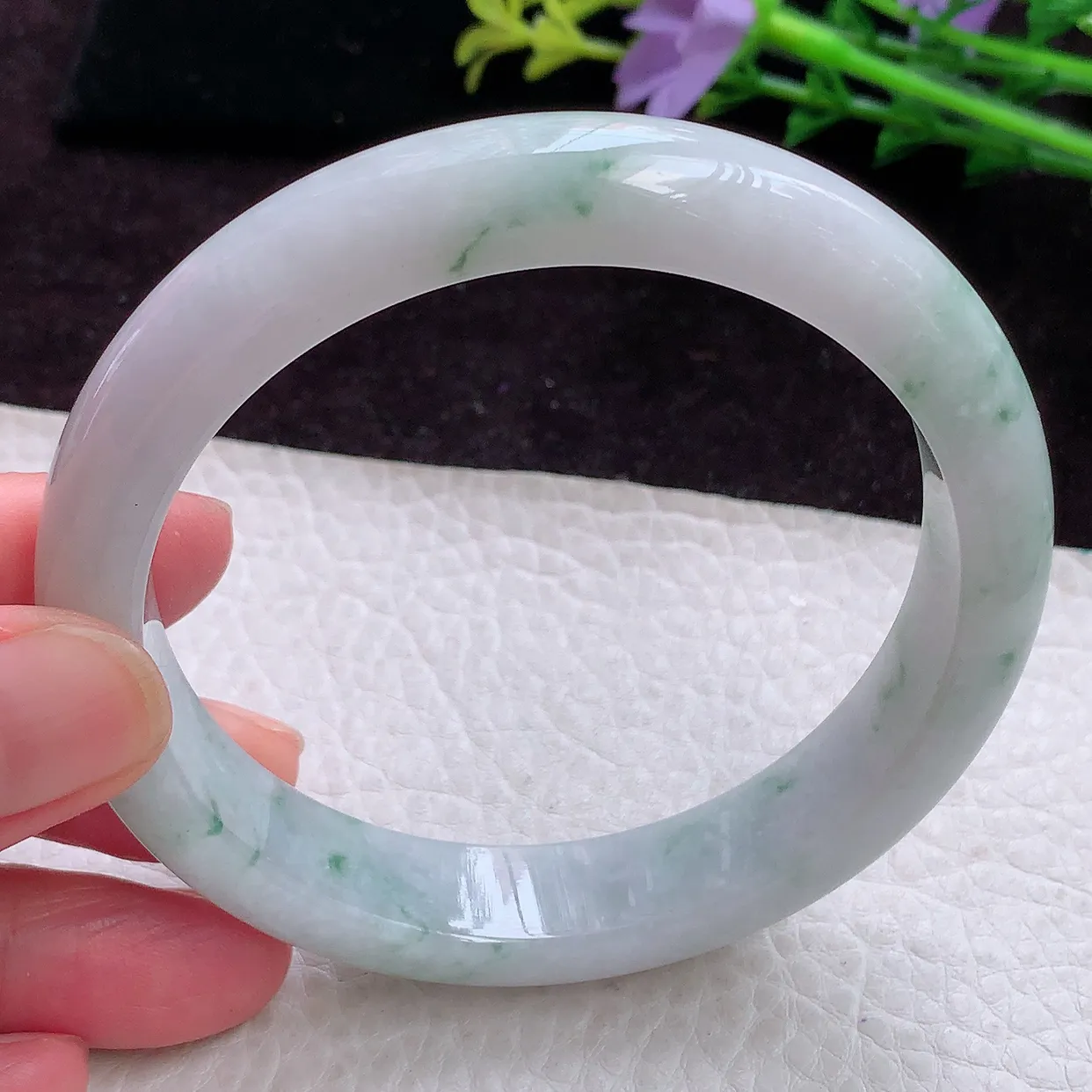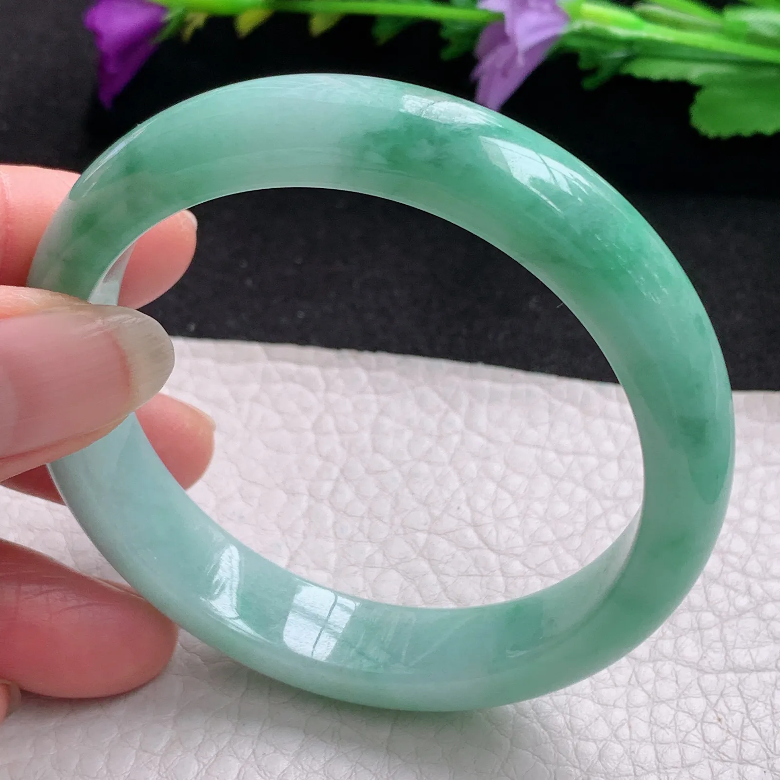 自然光拍摄 53.6圈口 翡翠莹润飘花正装手镯 A134玉质细腻,底子清爽,韵味十足,尺寸53.6×13.5×7.1mm