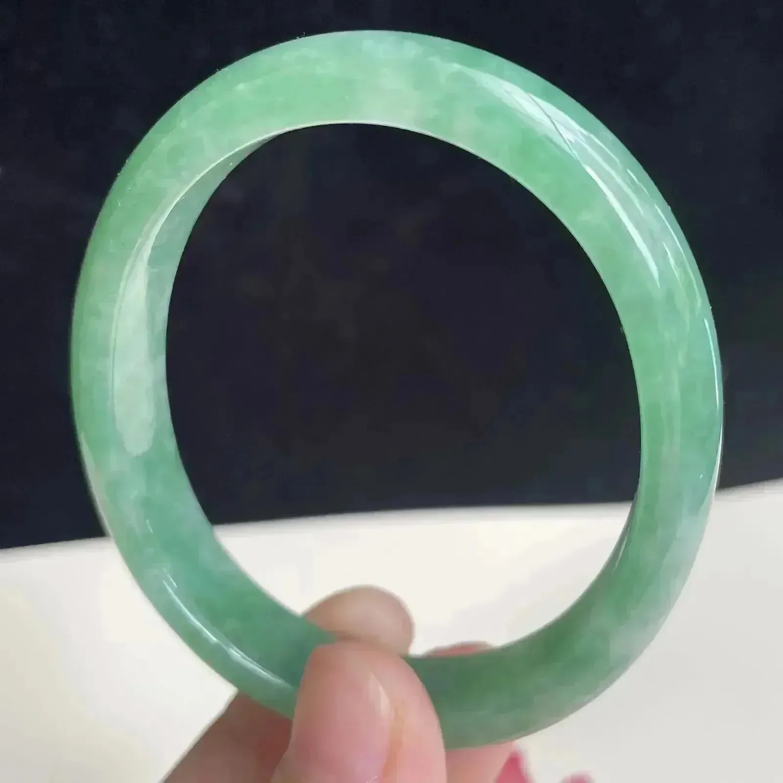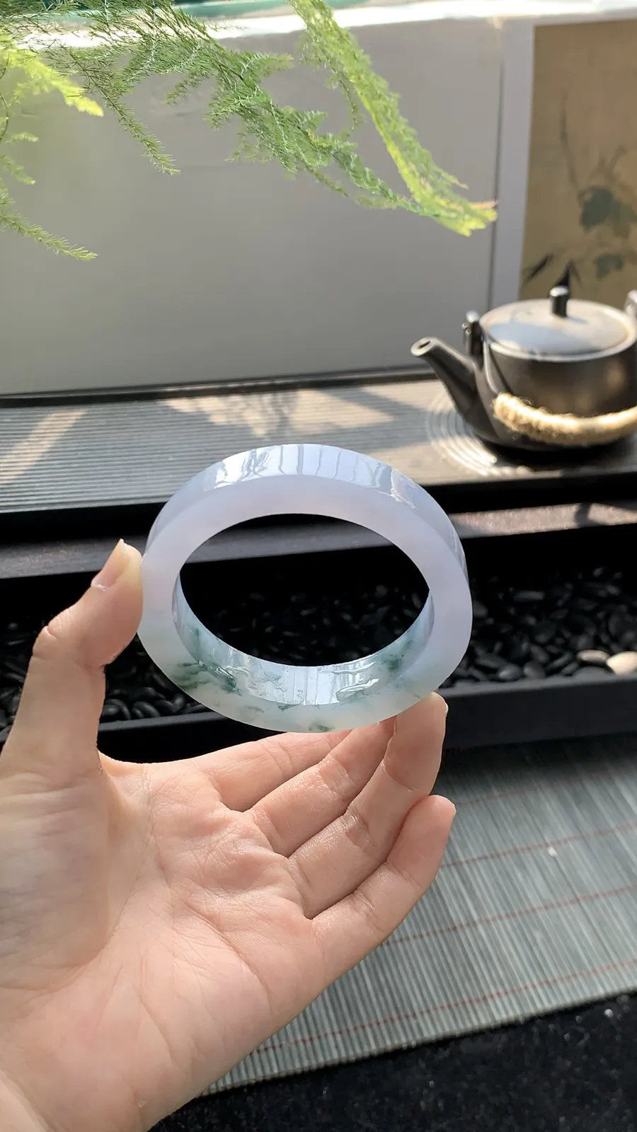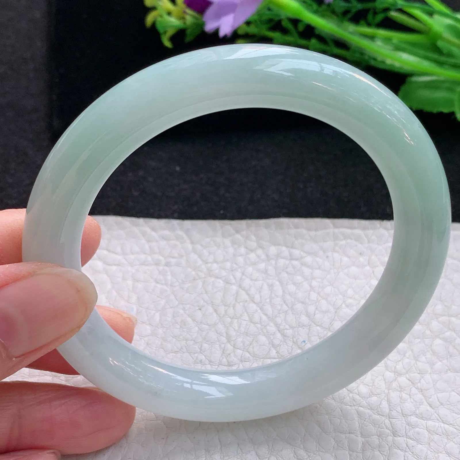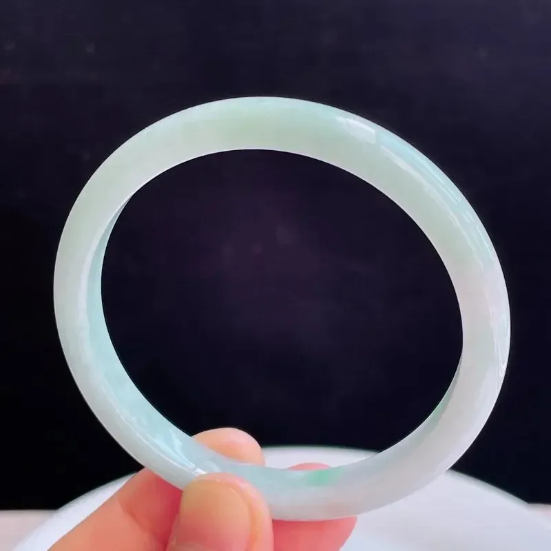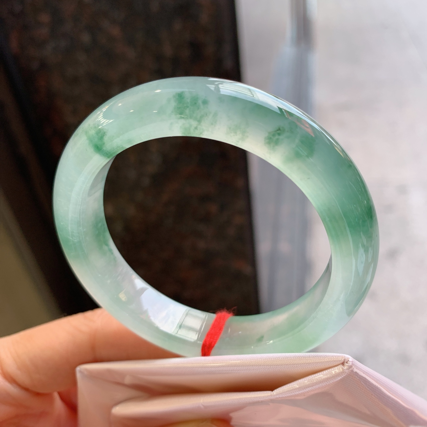 自然光拍摄 53.6圈口 翡翠莹润飘花正装手镯 A134玉质细腻,底子清爽,韵味十足,尺寸53.6×13.5×7.1mm