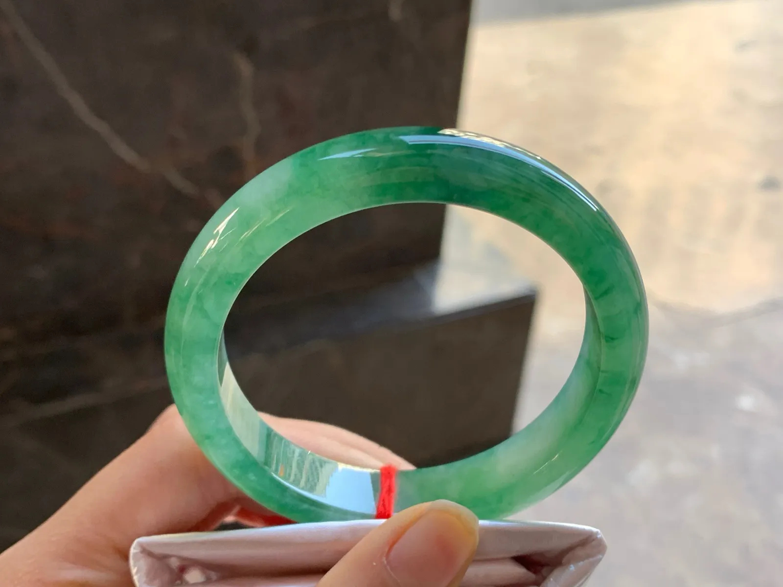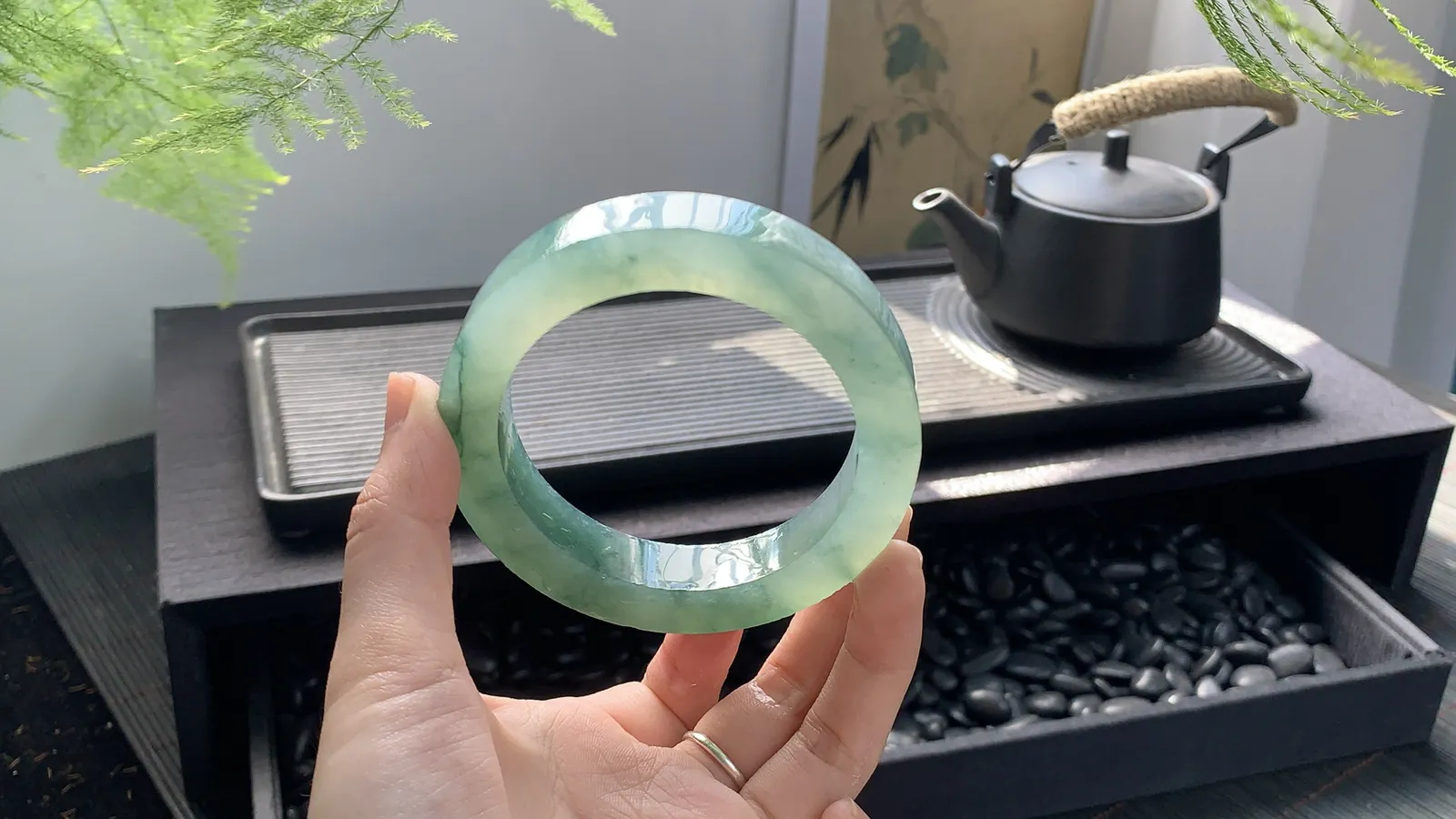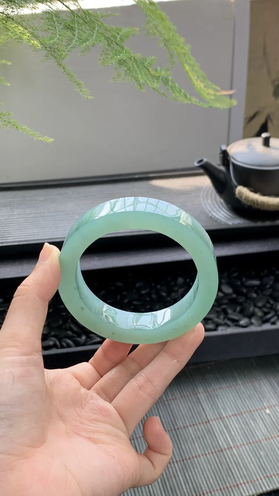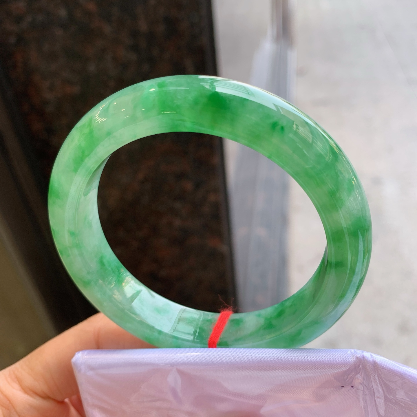 自然光拍摄 53.6圈口 翡翠莹润飘花正装手镯 A134玉质细腻,底子清爽,韵味十足,尺寸53.6×13.5×7.1mm