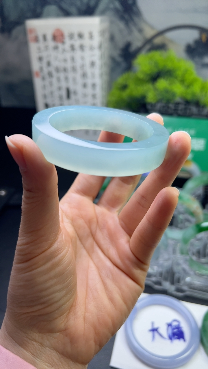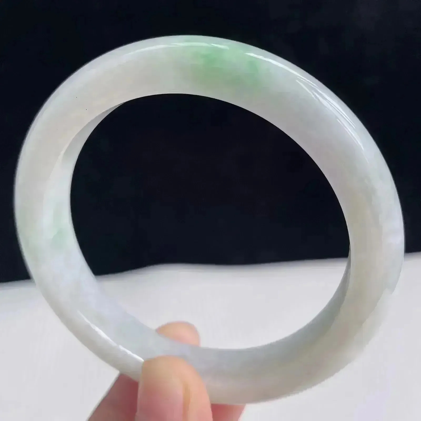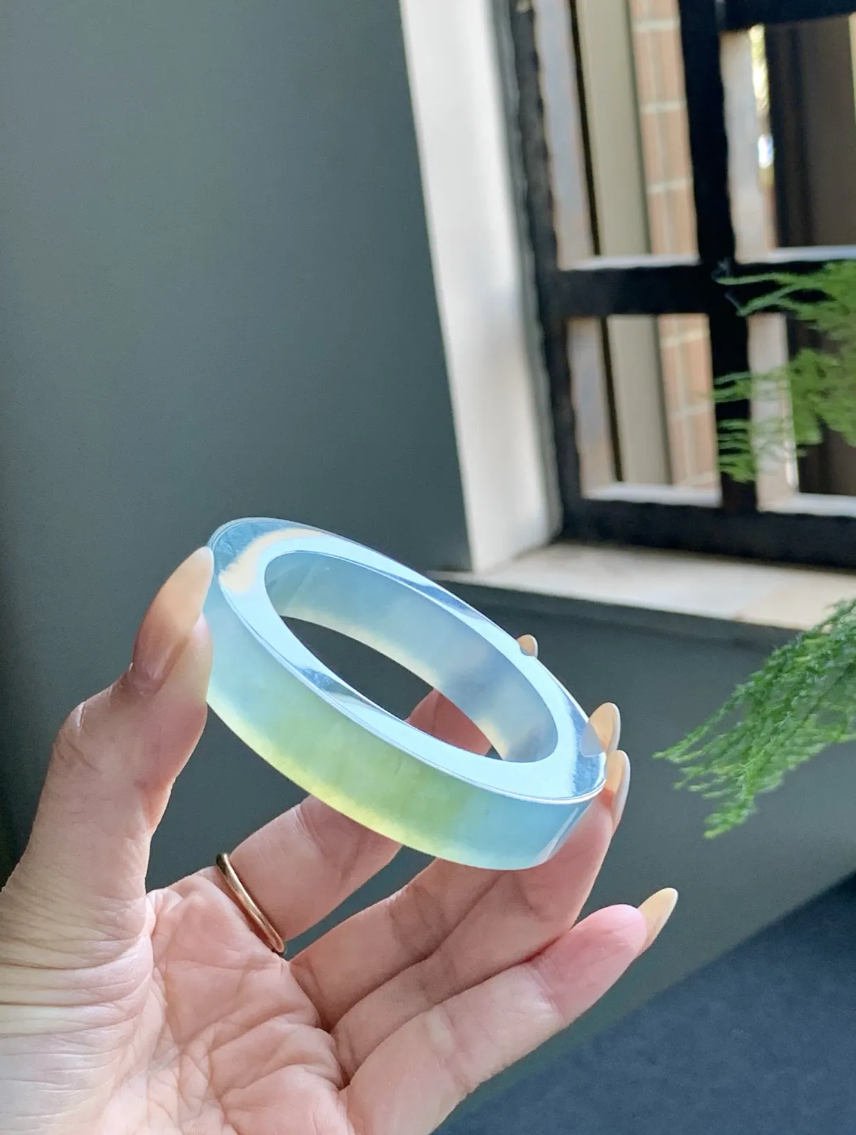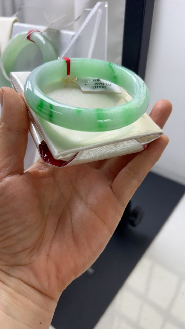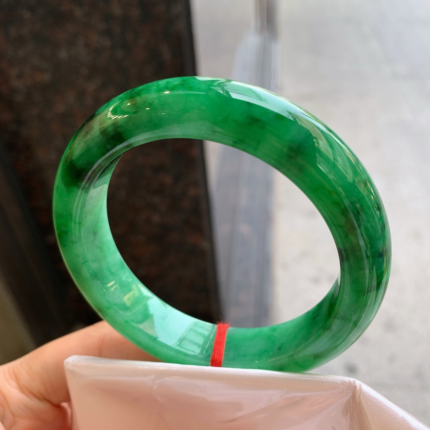 自然光拍摄 53.6圈口 翡翠莹润飘花正装手镯 A134玉质细腻,底子清爽,韵味十足,尺寸53.6×13.5×7.1mm