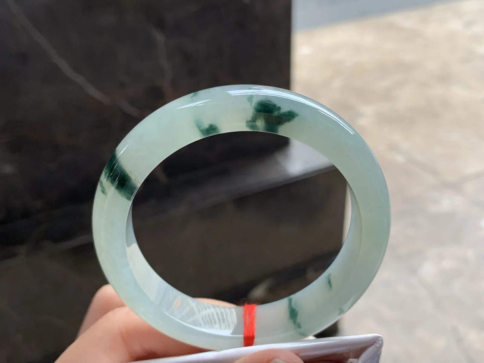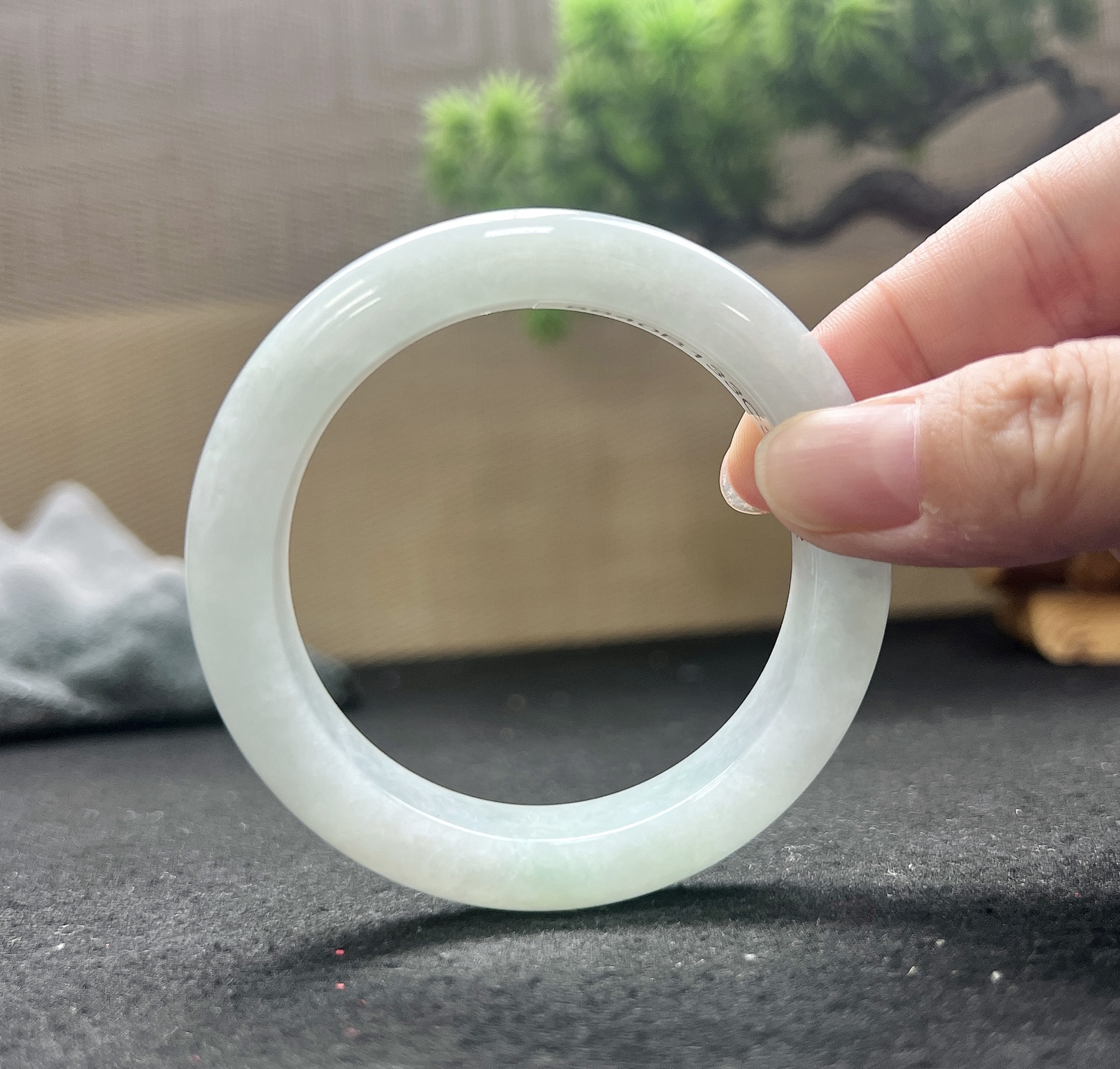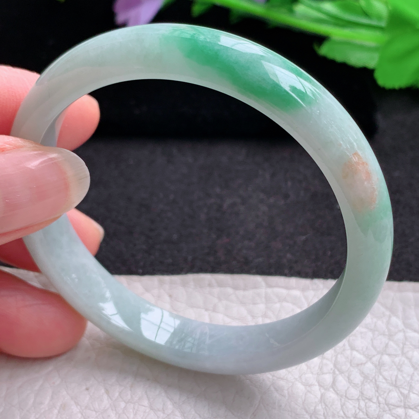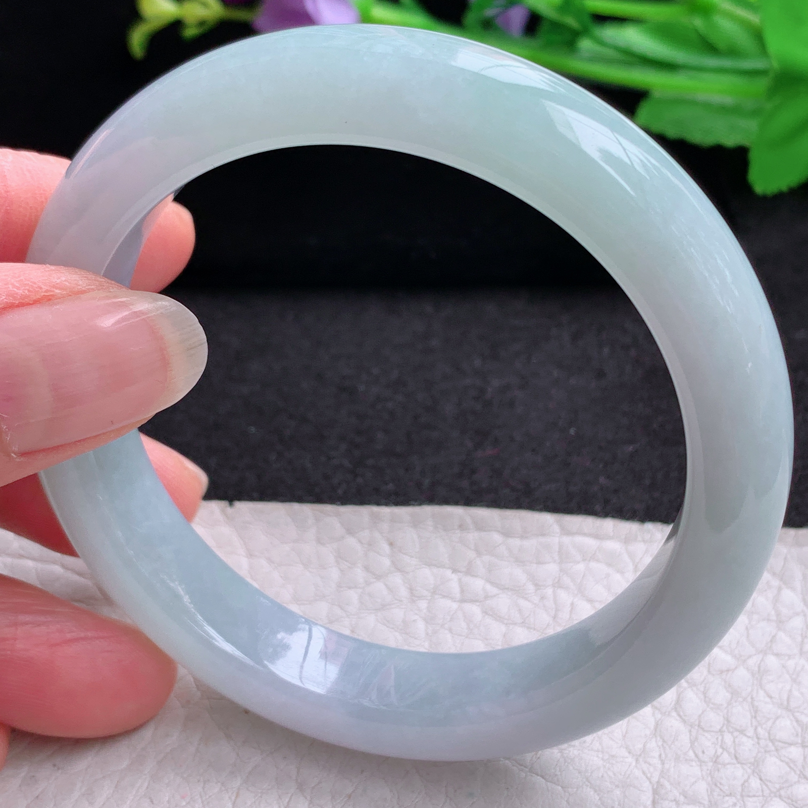 自然光拍摄 53.6圈口 翡翠莹润飘花正装手镯 A134玉质细腻,底子清爽,韵味十足,尺寸53.6×13.5×7.1mm