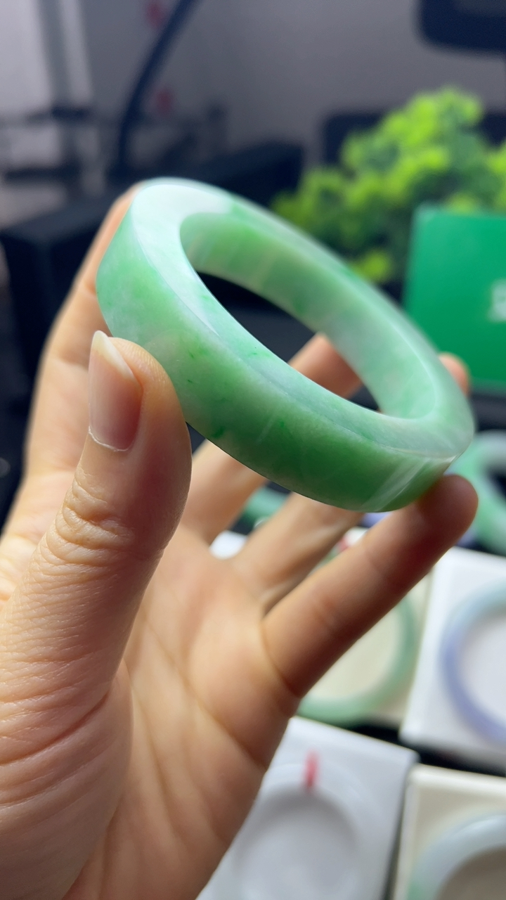 【翡翠名称】老种冰润飘绿花54.2正圈口手镯 【翡翠尺寸】58.8/14.5/7mm适合57.8-6